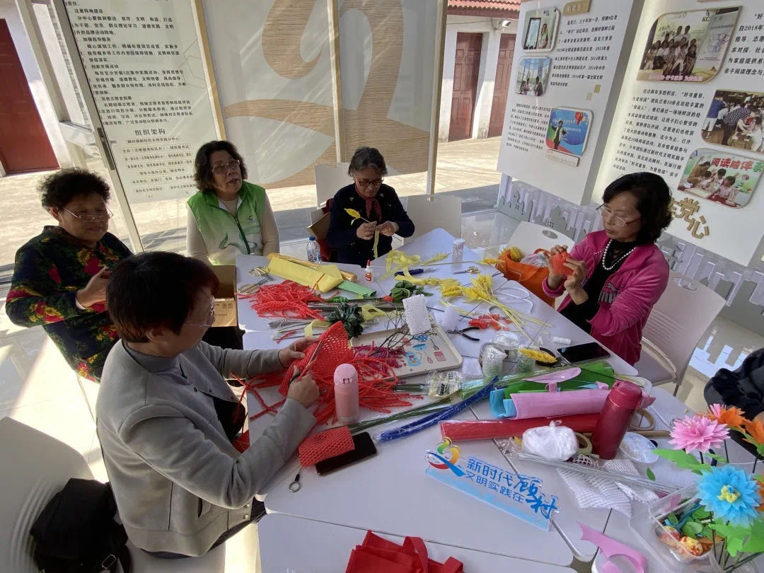 阿姨们还对吸管、环保袋、树枝、泡沫塑料等废弃物再利用,做出了枫叶、玉米、蘑菇、风铃、苹果、橘子等各种装饰品。