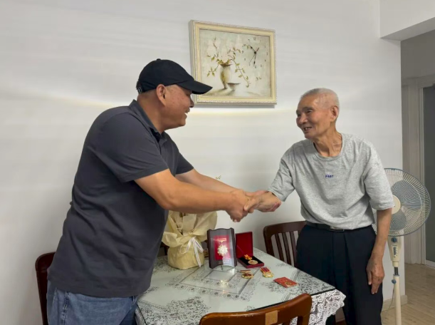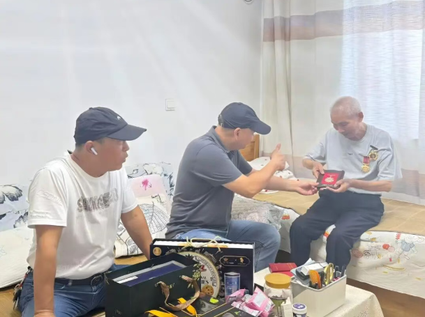 在纪念中国人民抗日战争胜利80周年暨世界反法西斯战争胜利的重要历史时刻,为弘扬伟大抗战精神和爱国主义精神,表达对革命功臣的崇高敬意和深切关怀,近日,鼎苑居委退役军人服务站组织开展了一次温馨感人的走访慰问活动,专程探望了曾参加抗美援朝战争的孙京老同志。 孙京老同志今年已89岁高龄,精神矍铄。来到孙老家中,与他促膝长谈,倾听孙老回忆那段烽火连天的峥嵘岁月。作为当年志愿军炮兵部队的一员,孙老曾在炮火纷飞的战场上英勇作战,凭借过硬的专业技术和无畏的战斗精神,多次出色完成作战任务,屡立战功,为保卫和平、反抗侵略作出了不可磨灭的贡献。