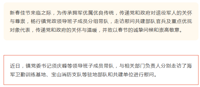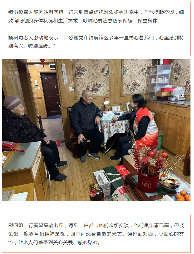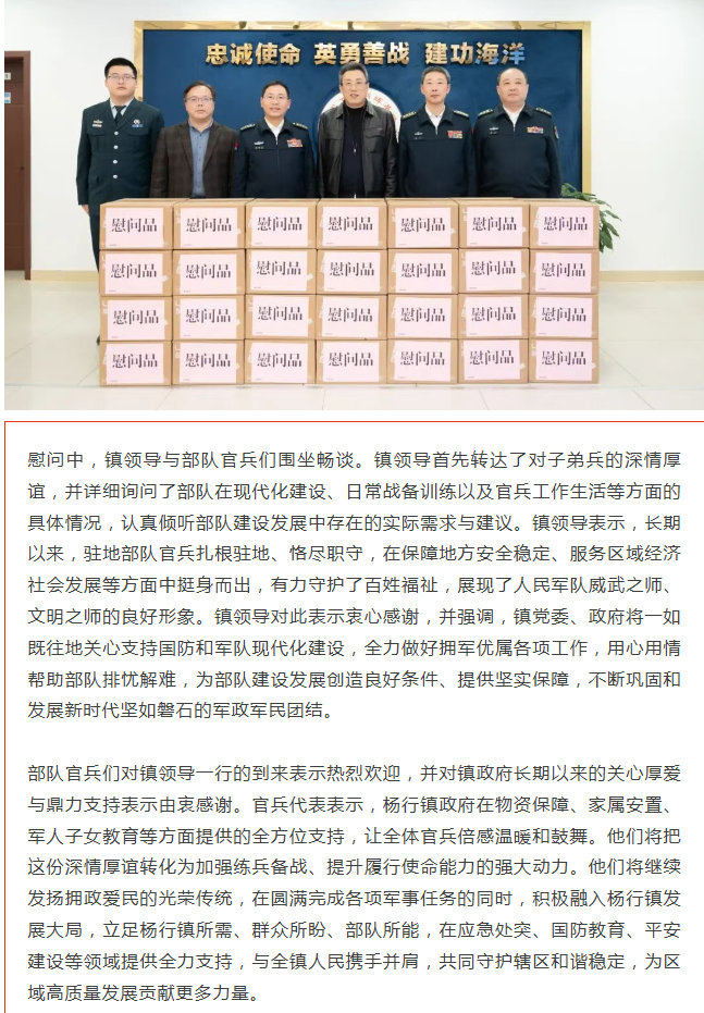 杨行镇走访部队官兵及重点优抚对象,向他们致以诚挚问候和新春祝福