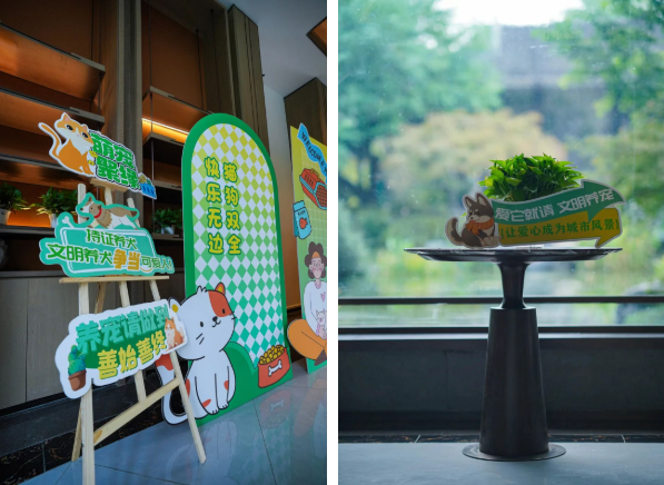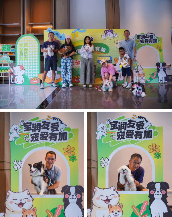 活动现场,精心搭建的和宠物合影的KT版成为了最受欢迎的打卡点。五彩斑斓的背景上印着可爱的宠物形象,旁边还点缀着一些浪漫的装饰元素。主人们纷纷带着自家的“毛孩子”来到这里,记录下这美好的瞬间。有的宠物乖巧地坐在主人身旁,眼神温顺;有的则兴奋地跑来跑去,仿佛也感受到了现场欢快的氛围。快门声此起彼伏,每一张照片都定格了主人与宠物之间深厚的情感,也成为了他们共同回忆的珍贵见证。
