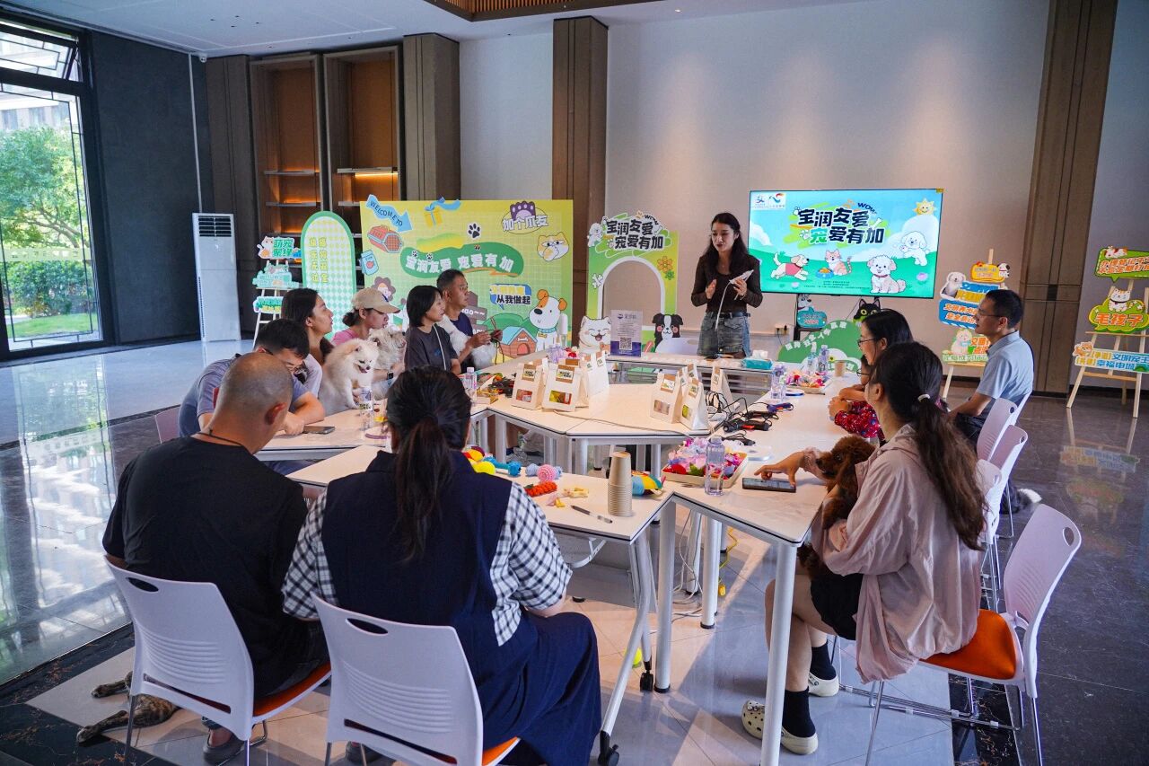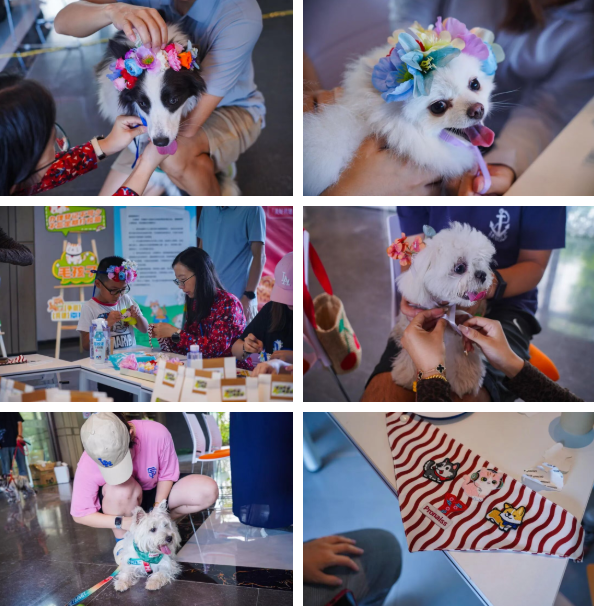 给宠物制作花带的区域同样热闹非凡。工作人员准备了各种颜色鲜艳的花朵、丝带和装饰小物件。主人们发挥着自己的创意,精心挑选材料,为自己的宠物编织美丽的花带。有的主人为狗狗制作了一条精致小巧的花朵项圈,花朵的芬芳与狗狗的可爱相得益彰;有的则为自己的爱犬设计了一款独一无二的小方巾,粘贴上可爱的图案和字母,狗狗戴上后仿佛瞬间成为了“时尚明星”。在制作过程中,大家互相交流经验,分享养宠心得,现场充满了欢声笑语,邻里之间的关系也变得更加融洽。