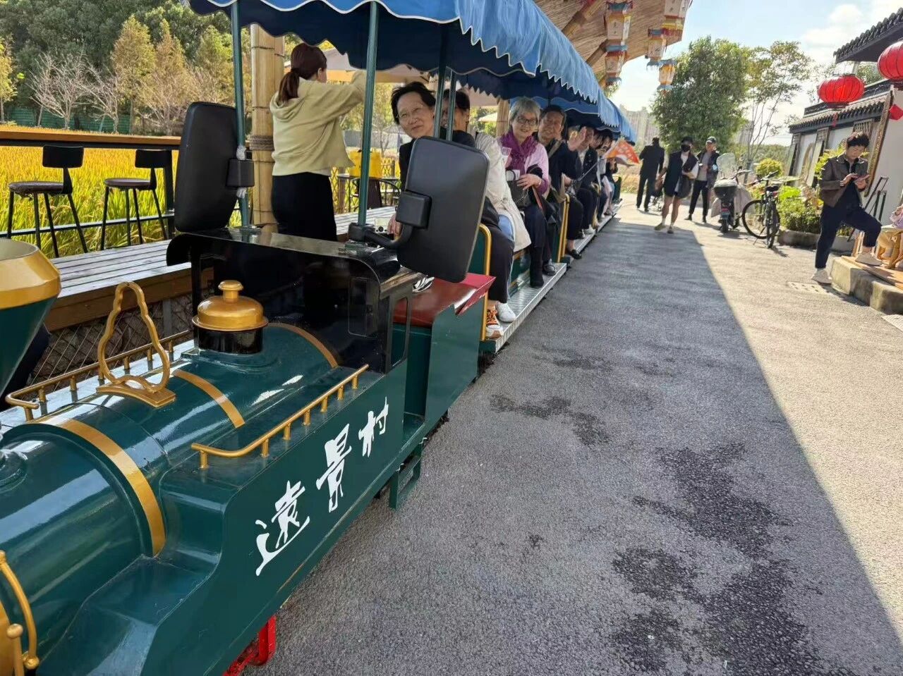 此次活动也迎来了淞南镇“看见文明”市民巡访活动的叔叔阿姨们,他们乘着小火车穿梭于稻田间,葡萄架下合影留念,透过阳光闻到麦香,解锁农村文明新风景。