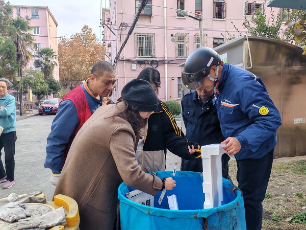 当日下午,建管中心针对宝钢二村居委保洁及物业团队开展“点对点”实地实操培训,工作人员先后前往4个垃圾厢房点位,结合上午理论内容,现场拆解实操要点,重点检查垃圾混投、标识内容准确等问题,通过 “手把手” 指导帮助新进保洁员快速掌握实操技能,切实推动垃圾分类工作落地见效。