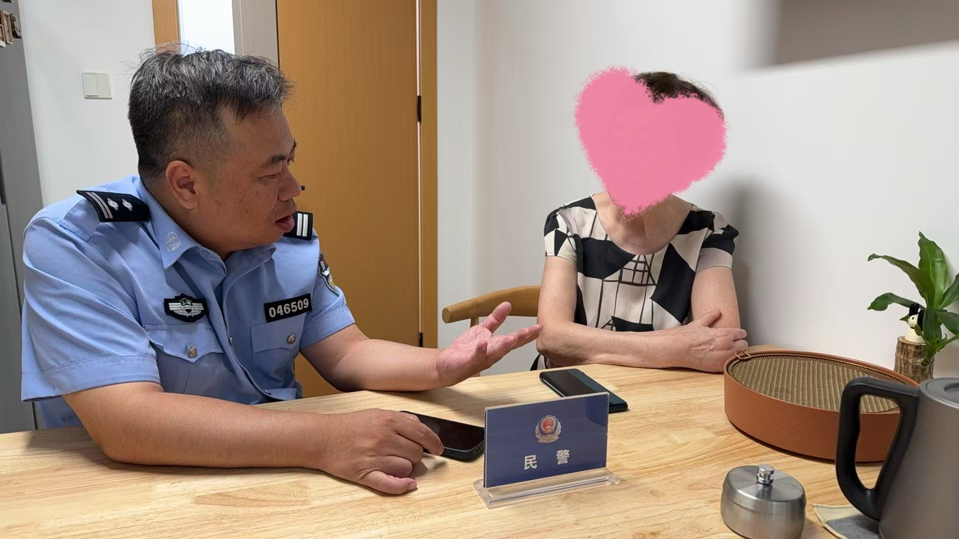 | 	她紧握手机、面色煞白,口中反复念着“征信”、“扣费”、“关闭功能”……和欣国际花园里,王阿姨接听“客服电话”时的异常神情,瞬间触动了“平安屋”巡逻队员的反诈雷达! 	凭借日常反诈培训练就的火眼金睛,巡逻队员果断上前,以“居委有事找您”为由,不动声色地将王阿姨带离诈骗分子精心编织的“话术陷阱”,护送至居委办公室。社区“平安屋”这一敏锐的前哨站,在骗局得逞前的最后时刻,筑起了第一道防线! 	与此同时,信息秒达社区民警李华勇!他一边远程指导队员安抚王阿姨,一边调取其基础信息及反诈宣传记录,争分夺秒直扑现场。