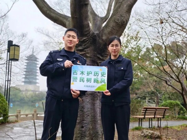播种·护苗·修剪 植绿于土,护绿于心。大场派出所将植树节蕴含的“生长”“守护”“修剪”意象延伸至公安基层治理,在辖区开展“播种·护苗·修剪”专项行动,让平安之树根深叶茂。 1 播种:法治宣传进沃土 大场所青年民警深入辖区社区、校园、商铺,通过发放宣传手册、现场讲解等方式,围绕森林防火、环境保护、邻里纠纷化解等相关法律法规开展宣传,向群众普及“护绿有责、毁绿必究”的法律知识,引导群众自觉爱护花草树木、守护生态环境,同时结合典型案例讲解反诈、禁毒、消防安全等内容,让法治理念像种子一样扎根群众心中。  2 护苗:治安巡逻筑篱笆 植树节前夕,大场所组织巡逻警力加大辖区公园、绿地、绿化带等人员密集区域的巡逻频次,重点排查防火隐患、破坏绿化设施等行为,及时制止攀折花木、践踏草坪等不文明现象,同时兼顾辖区治安防控,排查各类安全隐患,守护群众出行安全,用脚步筑牢“护绿+平安”双重防线。  3 修剪:纠纷调解化枝杈 “修剪”和谐,化解邻里心结。面对辖区内邻里间的矛盾纠纷,大场所民警秉持“公平公正、邻里和睦”的原则,倾听双方诉求,积极引导换位思考、互谅互让,成功化解多起邻里矛盾,“修剪”隔阂、凝聚温情,让邻里关系在春风中更加和谐。 再赴绿意约 大场所民辅警代表来到淞沪抗战纪念馆,重回去年认养古树的地方,延续这份绿色约定。民辅警们查看古树生长情况,清理周边杂草落叶,以实际行动守护历史见证。