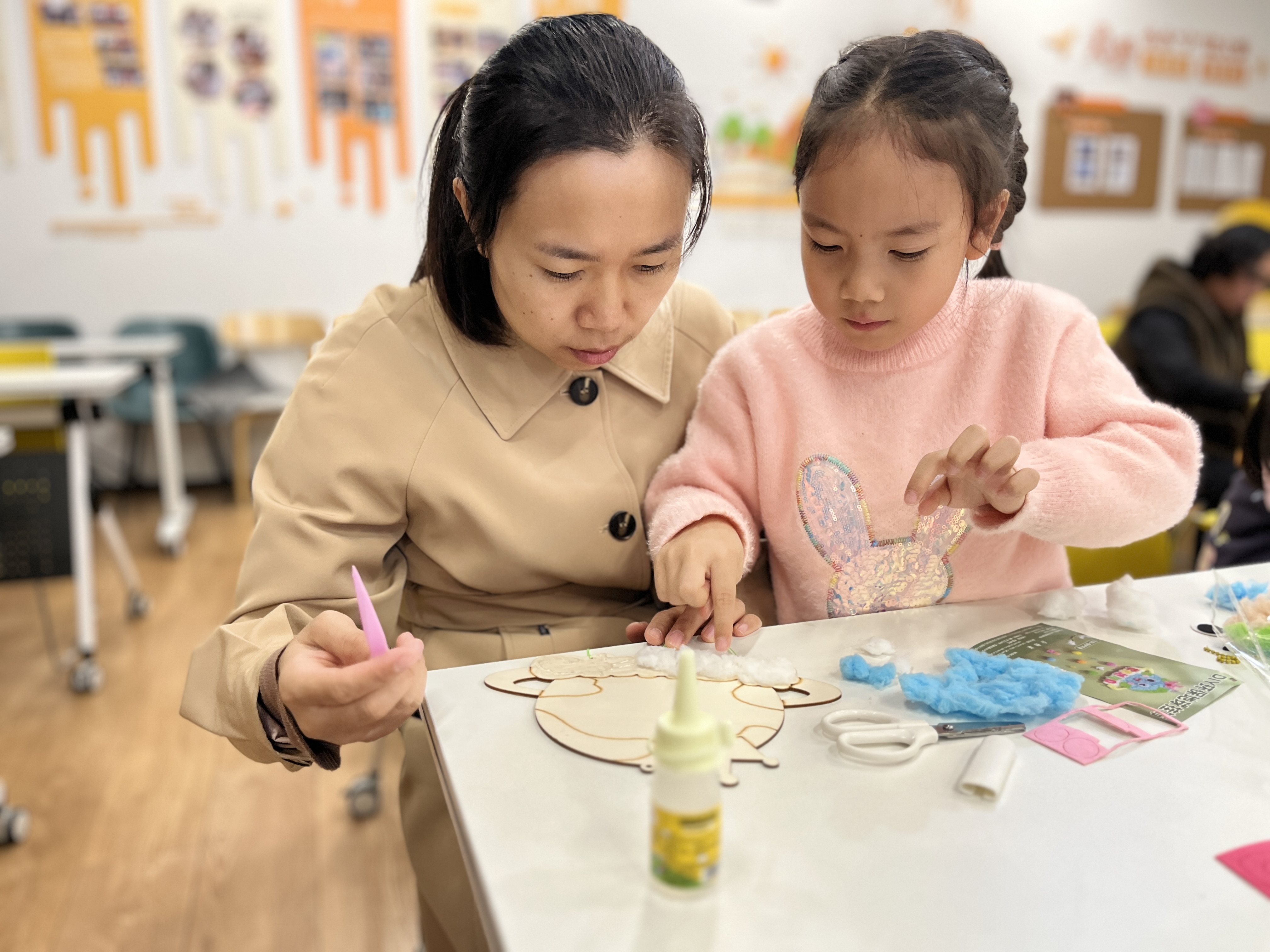 亲子手工:共筑环保地球挂饰 活动尾声,亲子手工环节温馨开启。家长与孩子携手合作,利用不织布、环保绳等材料,精心制作地球主题挂饰。彩线缠绕,贴纸点缀,创意拼贴……一件件色彩缤纷的地球挂饰在亲子默契协作中诞生,每一件都承载着对地球的珍视与守护。指尖流转的,不仅是手作的乐趣,更是环保理念的无声传递。