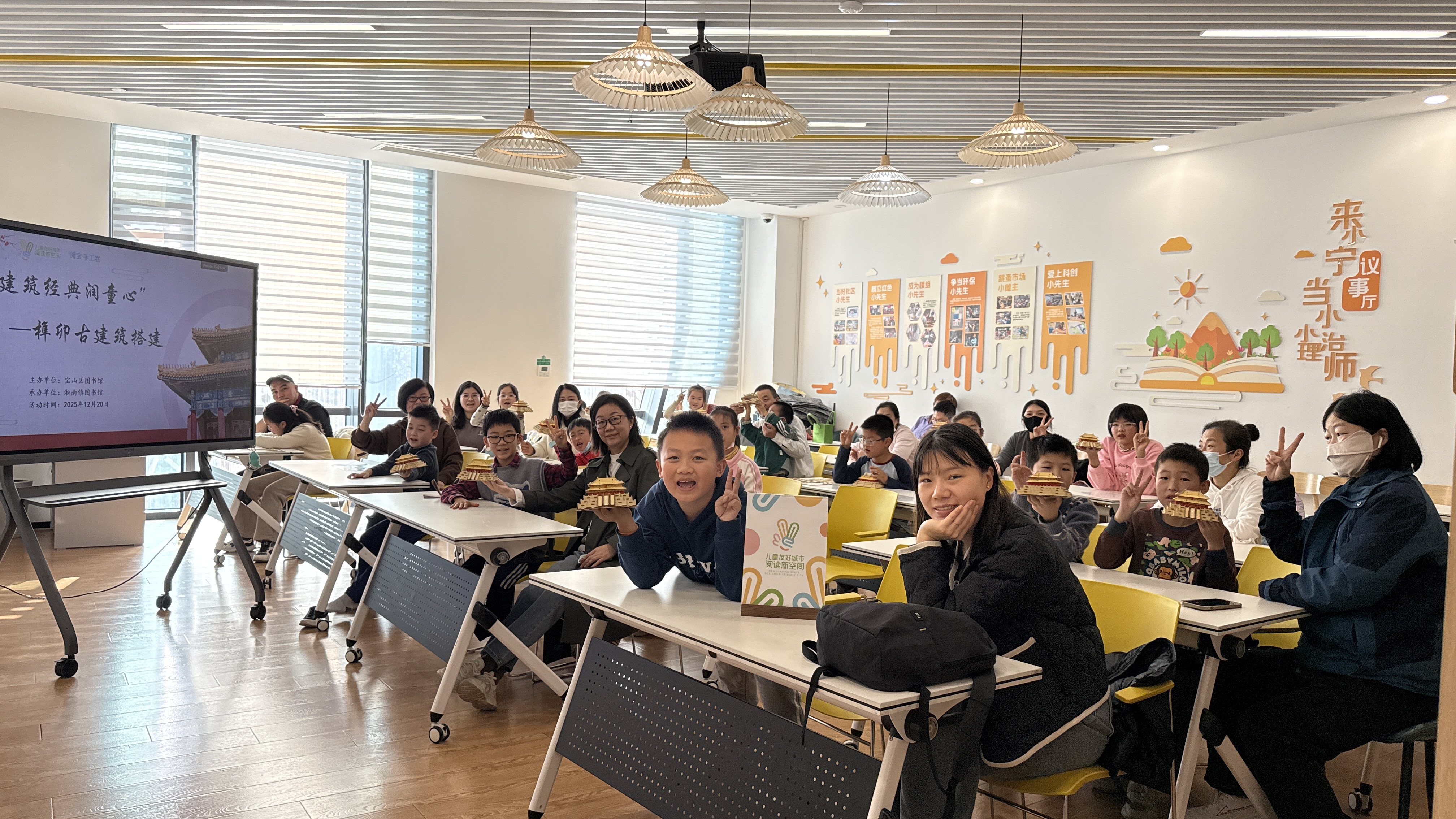 当木头的榫头轻轻扣入卯眼,当孩子与家长的手一起协作,一座微缩的太和殿,竟不用一根钉子就稳稳立起。近日,在淞南镇图书馆的“儿友好阅读新空间”,“阅宝・手工客”之“建筑经典润童心”榫卯搭建活动,带来了一场充满巧思与欢笑的亲子时光。十六组家庭在这里相聚,亲手触摸传统,感受藏在木头里的智慧。