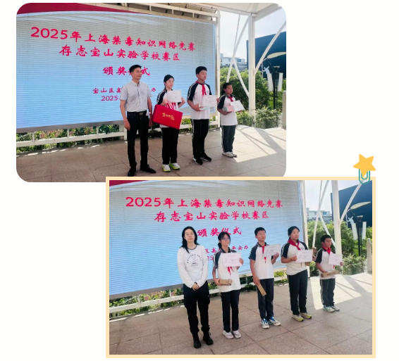 致辞结束后,活动进入激动人心的颁奖环节。在今年6月举行的上海市禁毒知识网络竞赛中,存志附属宝山实验学校的学子们踊跃答题、表现突出,一批同学凭借扎实的禁毒知识积累脱颖而出。其中,九(1)班潘书瑶摘取桂冠,七(1)班杜玥汐、八(1)班钮春贤荣获亚军,七(2)班蔡语辰等4名同学获得季军。他们不仅是比赛的优胜者,更是校园禁毒宣传的“先锋榜样”,激励更多同学争做“禁毒小达人”。