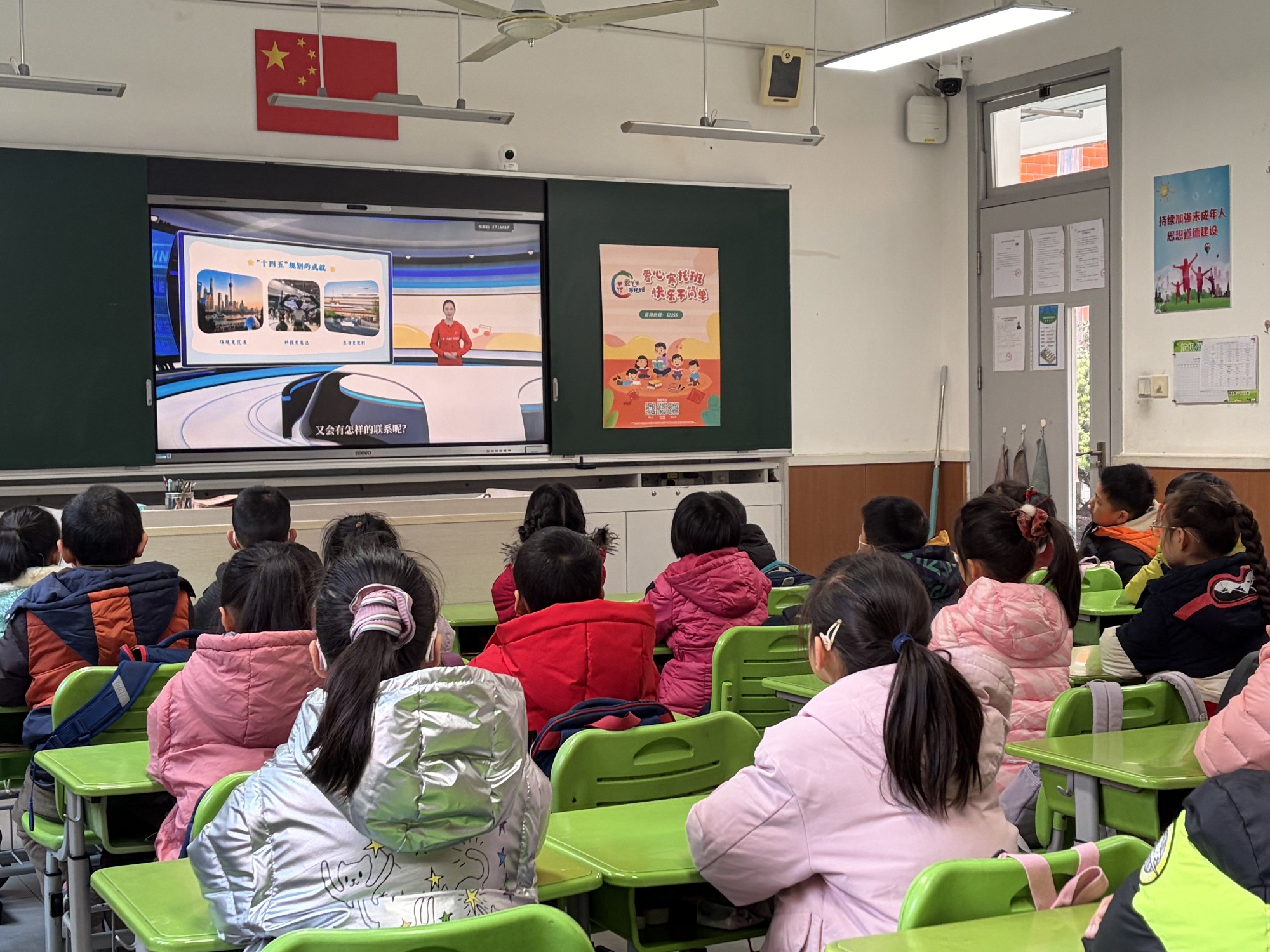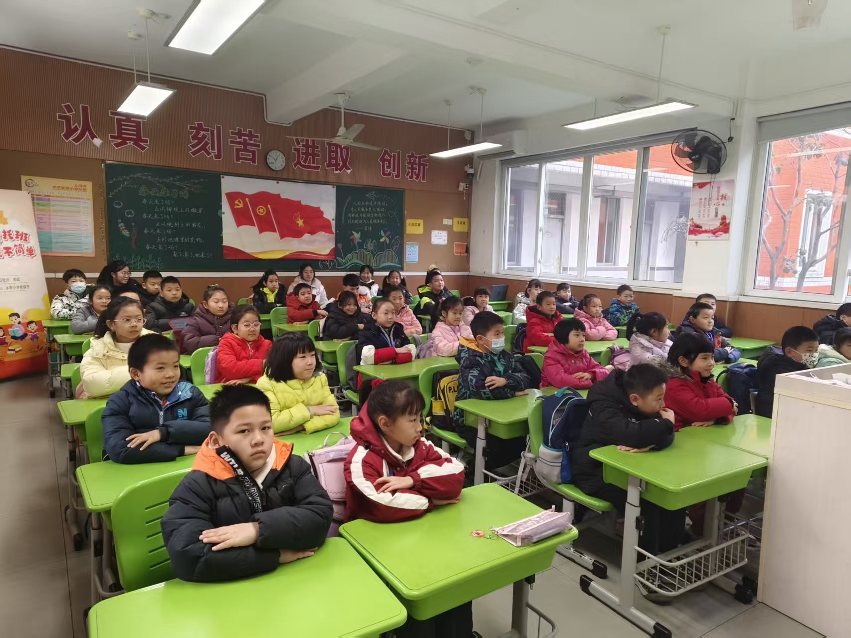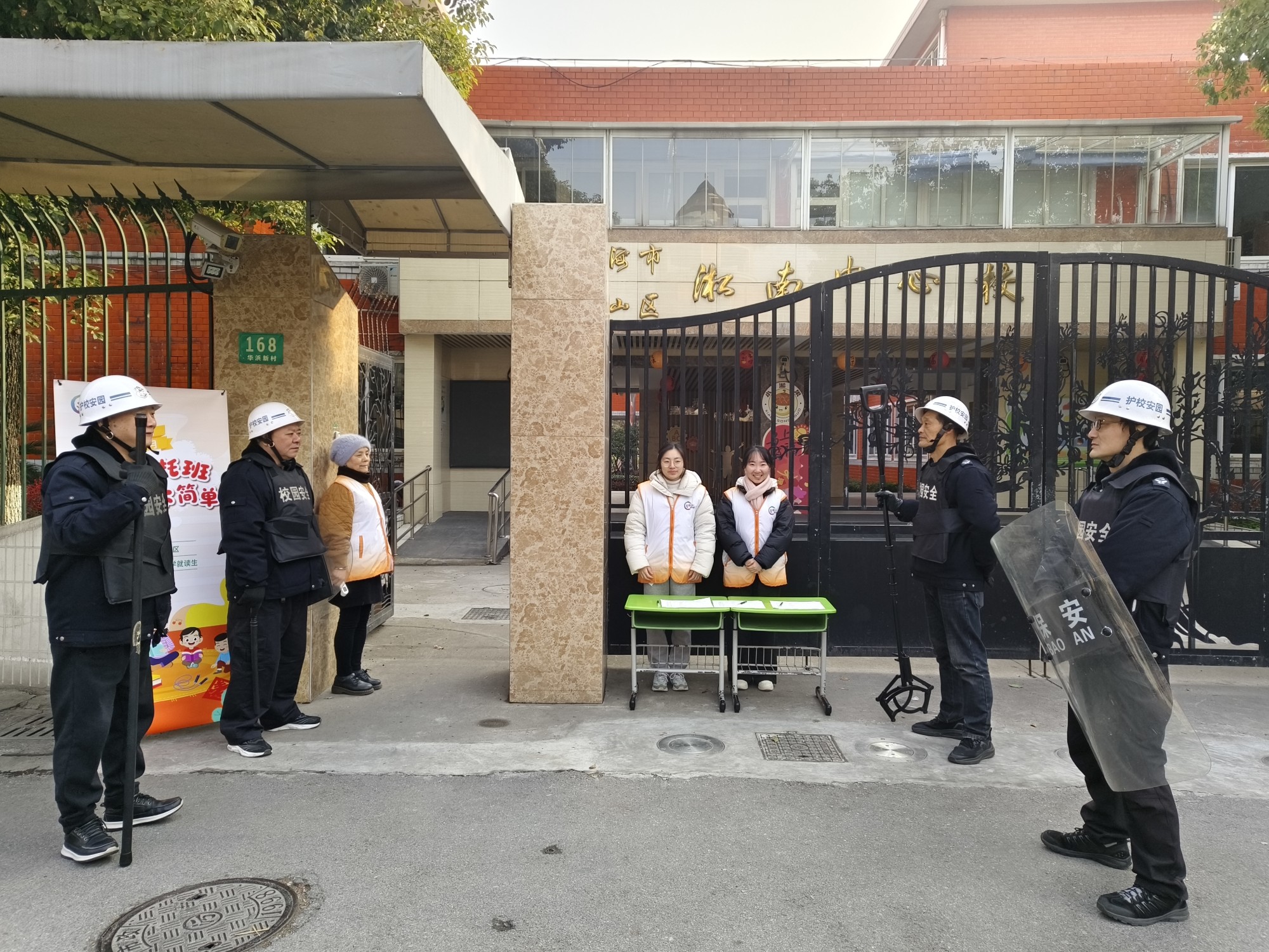四位保安人员始终坚守岗位,在寒风中默默关注着孩子们的动向,一声声亲切的问候与指引,让初入校园的孩子们感受到如家般的安心。  教室里早已温馨就绪。在班主任的轻声引导下,孩子们陆续落座,有的好奇地打量新朋友,有的已认真整理文具,眼中闪烁着对新一天的憧憬。简单的班级规则讲解后,孩子们端正坐姿,静静等待课程的开启。