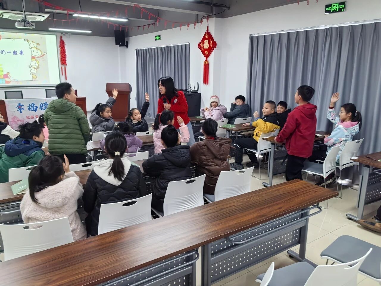 在顾村镇欣康苑居民区的青少年活动室里,孩子们围坐一堂,一场关于“情绪有没有对错”的辩论热火朝天、酣畅淋漓。在世纪长江苑的社区小广场上,一位位“小小主理人”各司其职、有条不紊,把儿童市集办得有声有色、红红火火。在“幸福顾村”社区专项基金的支持下,这两场风格迥异、各有侧重的主题寒假营活动顺利开展,共吸引40余名社区青少年主动参与。这个寒假,孩子们不再是社会实践的“旁观者”“被动参与者”,而是转身成为社区活动的“策划者”、社区服务的“实践者”,在实践中收获成长、绽放光彩。 1生命教育:从被倾听到主动引导 欣康苑居民区党支部举办“生命教育”寒假营活动,围绕“自我认知与情绪管理”主题,通过心理健康教育、趣味互动体验、亲子共学交流等丰富环节,帮助孩子认识自我、接纳情绪、提升沟通能力,共有20余名不同年龄的青少年参与。课程设置了分享主持、情景演绎组织、亲子互动引导等多个角色岗位,由孩子轮流承担。其中,年龄稍大的孩子主动请缨担任“班长”,协助工作人员维持秩序,化身班级里的“情绪小管家”和“沟通小助手”。孩子们在大胆表达中释放自我、增强自信,在主动协助他人中学会担当、提升责任意识,每一个身影都充满朝气与力量。