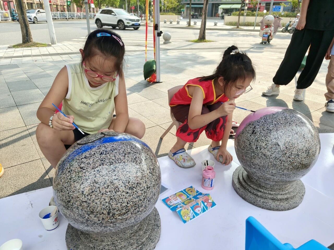 宝通家园“社区小先生”们化身小小“城市美容师”,拿起画笔为路边石墩涂鸦换装。充满童真的卡通图案连点成片,为国庆佳节增添了一道亮丽的风景线。中秋佳节当日,孩子们与家长一同穿线、贴纸、装灯,一盏盏承载着创意与祝福的兔子灯,不仅播撒下赓续传统文化的种子,更串起了亲子与邻里间浓浓的团圆温情。