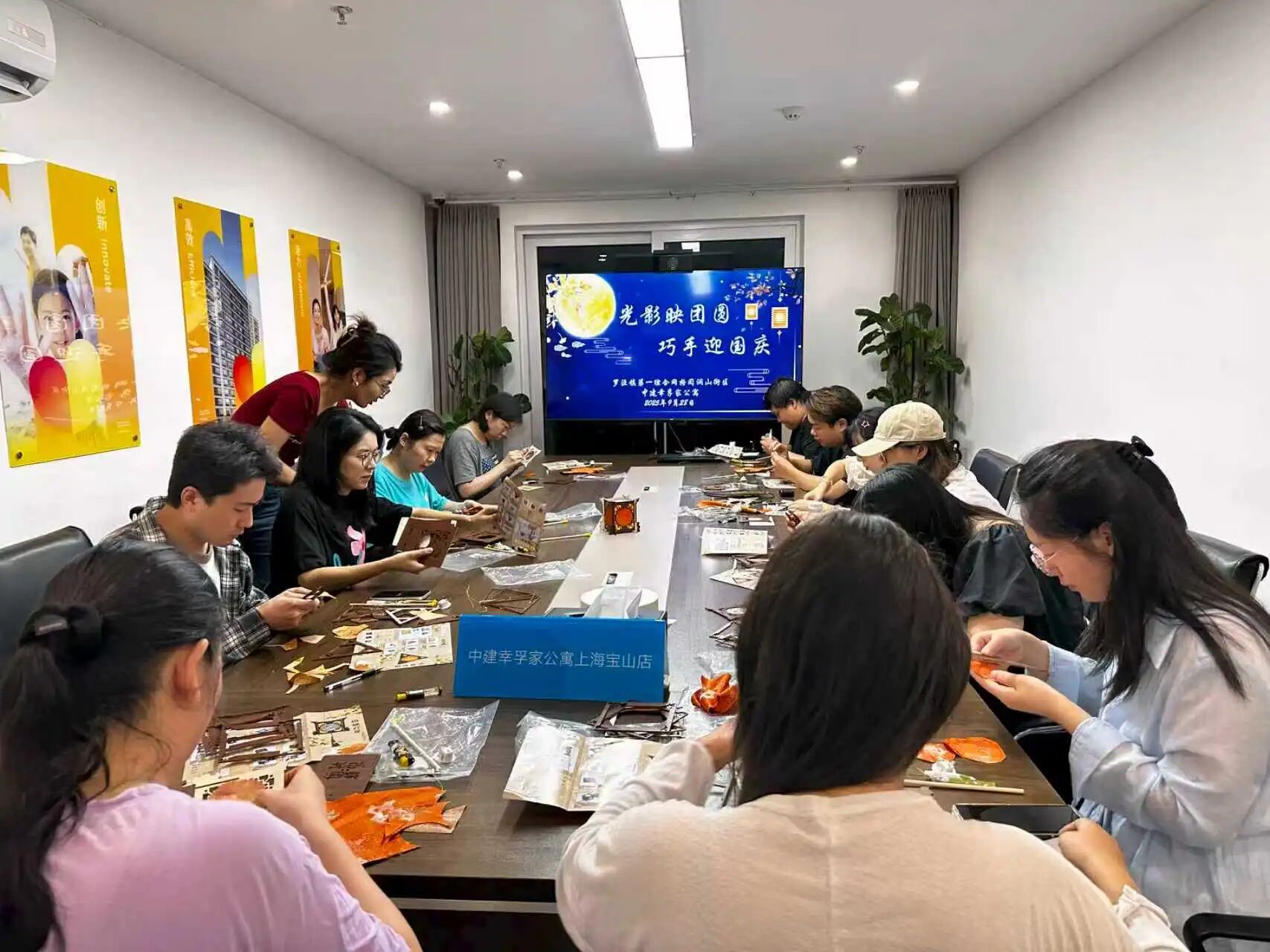 为让异地打拼的新居住形态群体感受节日温暖,中建悦澜山街区在幸孚家公寓共享空间开展 “光影映团圆 巧手迎国庆” 织锦灯笼制作活动。租客们齐聚一堂,穿针引线间制作出一盏盏精致的织锦灯笼,灯影流转中,陌生的彼此渐渐熟络,感受着节日的温馨与团圆。