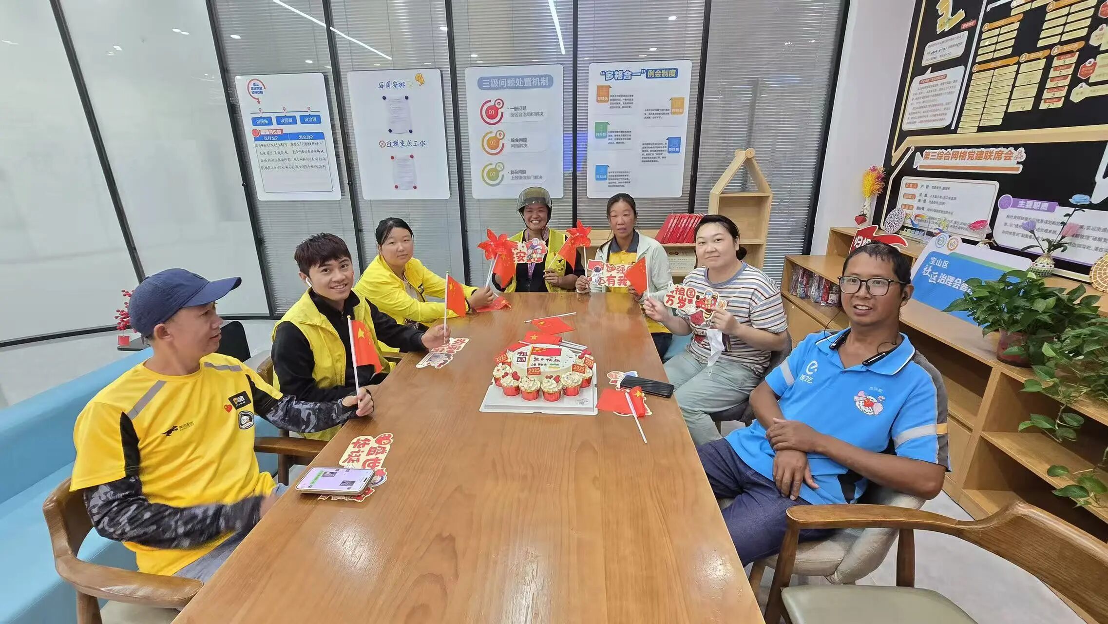 睦邻小镇街区向街区内沿街商户发出 “落实门责、洁净家园” 倡议,号召商户共同维护街区环境,助力文明建设;国庆当日的“泾骑手集体生日会”,突破传统节庆模式,将 “议事会 + 微心愿 + 生日庆” 深度融合,不仅为新就业群体送上了温暖生日祝福,更通过议事环节倾听他们的需求、助力一个个微心愿梦想成真。
