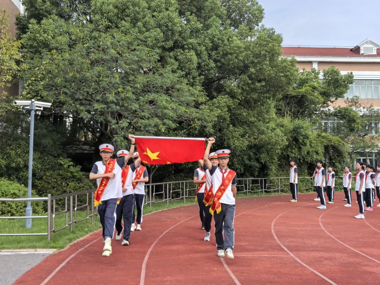 罗泾少年们向国旗献礼 嘹亮的国歌响彻校园 汹涌的爱国情志 激荡不息