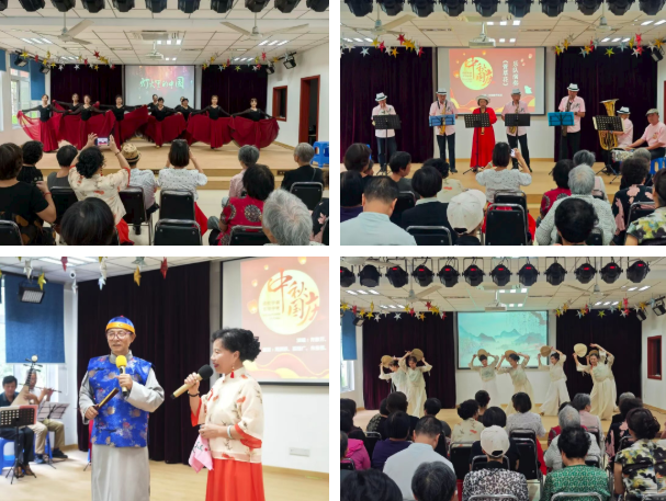 月满中秋  艺彩纷呈 	金丰苑一居实践站号召社区自治文艺团队欢聚一堂,以“月满华诞,家国同庆”为主题,举办“迎中秋 庆国庆”文艺汇演活动。活动中,各类自编自演的精彩节目轮番上演,大家用舞蹈跳出幸福生活,用戏曲唱响和谐乐章,用乐声传递温情暖意,赢得了小区居民的阵阵热烈掌声。