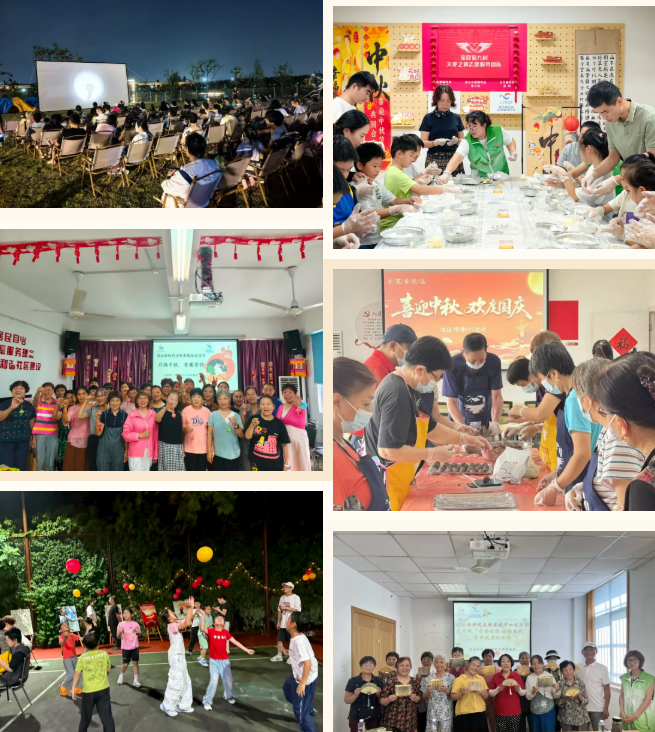 嗨玩中秋  FUN飞月光 	宝润雅苑联合物业开展“双节同庆乐游园 邻里欢聚暖人心”迎中秋主题活动,活动设置体验区、美食区,文化区。香甜的棉花糖、酸甜的糖葫芦唤起童年记忆,特色烧烤、爆米花香气四溢,现场书写的龙凤艺术字更是成为居民喜爱的节日纪念品,非遗皮影戏精彩上演,让居民在品尝美味的同时,感受传统文化魅力。