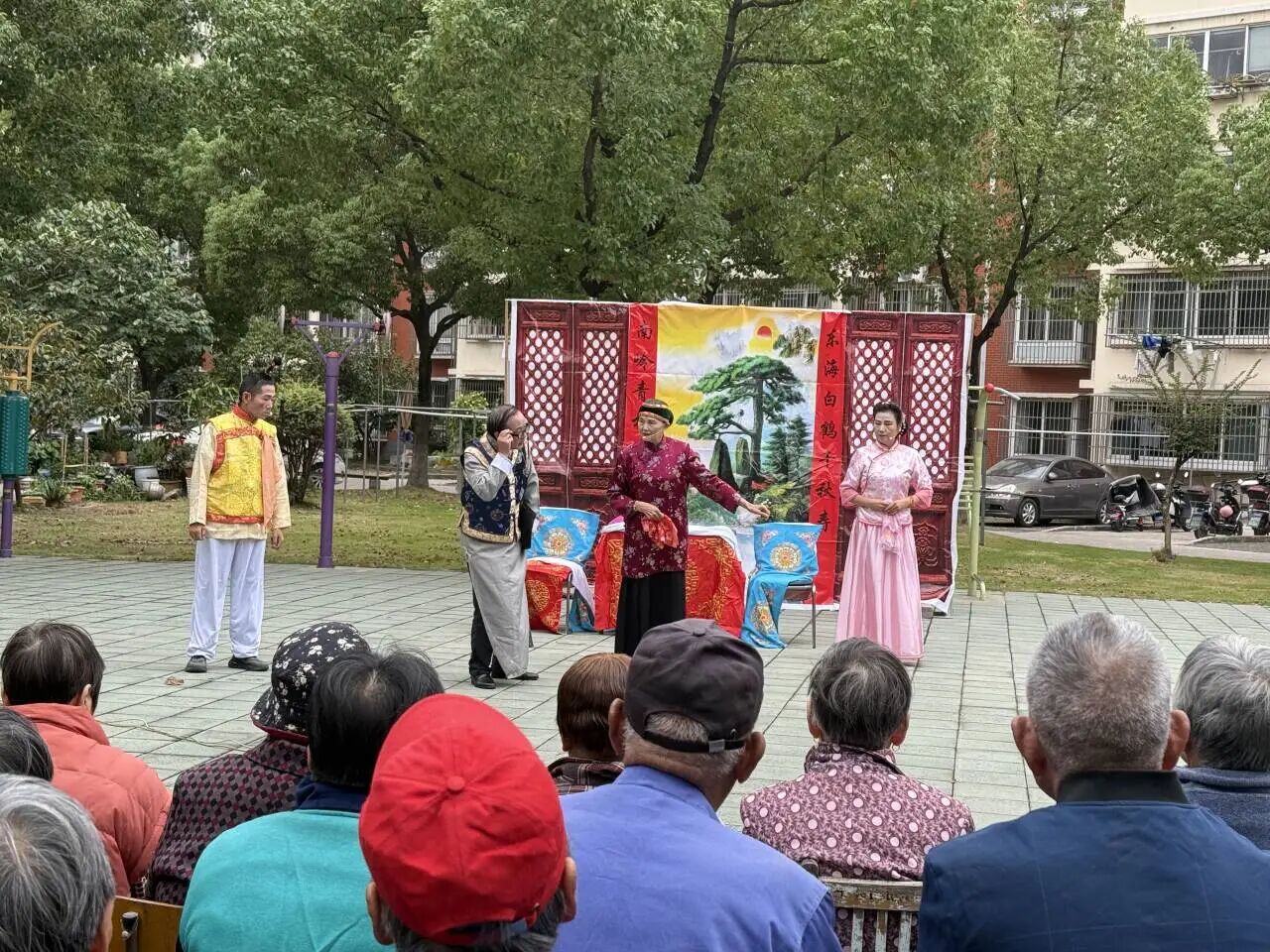 富南居民区则专门开展了一场重阳节主题的经典沪剧《贤惠妻子》专场演出,让老人们在乡音雅韵中度过温馨、欢乐的节日。沪剧作为上海本土的传统戏曲,深受社区中老年居民的喜爱。《贤惠妻子》作为一部广受欢迎的经典剧目,通过生动的故事和优美的唱腔,歌颂了主人公善良、坚韧、无私奉献的传统美德。沪剧演员们声情并茂,以婉转的唱腔和细腻的表演,将剧中人物的情感纠葛和善良品质刻画得淋漓尽致,这不仅是送给社区老人们的一份重阳节文化贺礼,更是社区“文化惠民”的具体实践。通过寓教于乐的形式传承和弘扬地方戏曲文化,增强社区的凝聚力和向心力。