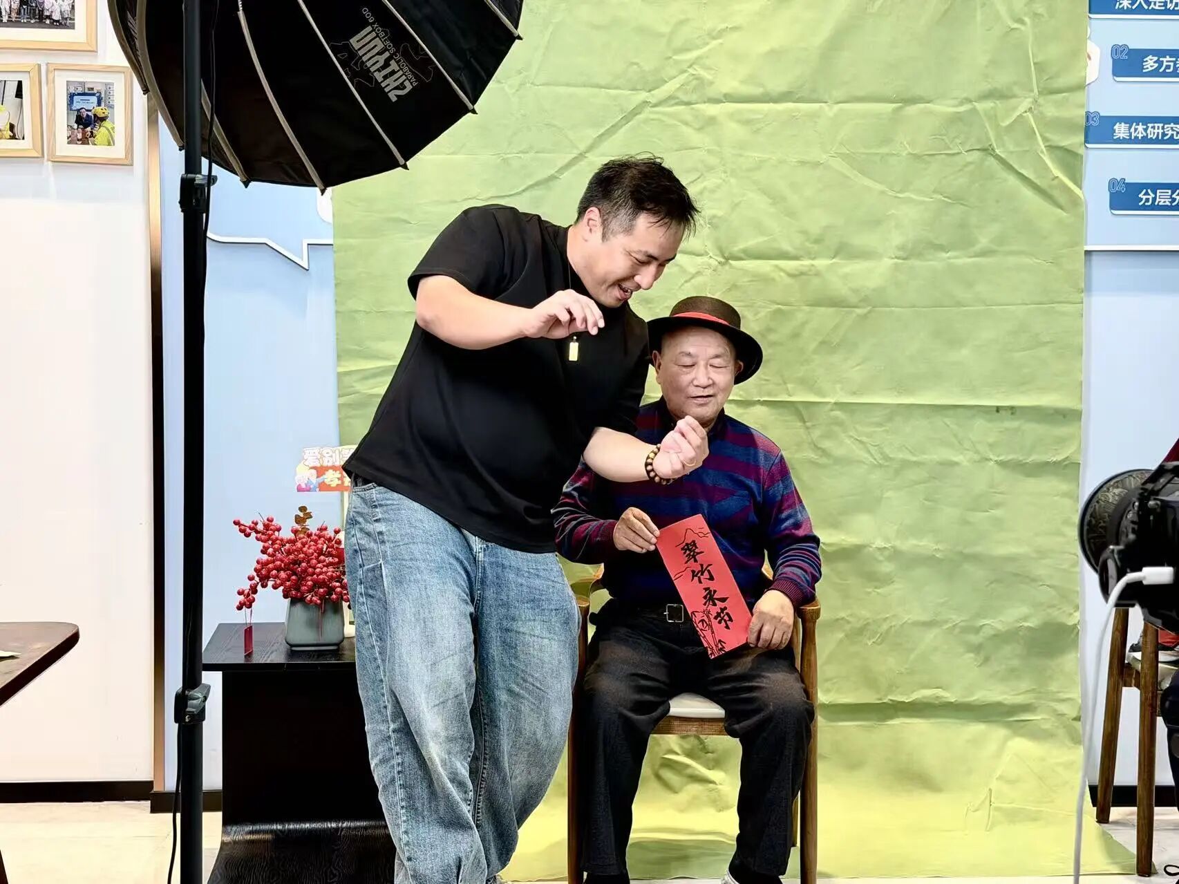 “我们一大早就收拾好新衣服、认真打扮了来排队。小李把我们拍得很精神,去年的照片一直被我们放在床头。每年来拍一次,也是在记录我们走过的年华。”家住附近的王阿姨向镜头展示刚冲印好的照片,脸上满是欢喜。如今智能手机虽已普及,但镇内部分村庄的老人仍鲜有专门拍照的机会,很多人一辈子没拍过几张正式照片,手头能留存的实体照片更是寥寥无几。正因如此,照片拍摄完成后,志愿者会第一时间进行冲印塑封,将装裱好的相框送到老人手中,让这份“幸福的记忆”能长长久久陪伴在他们身边。