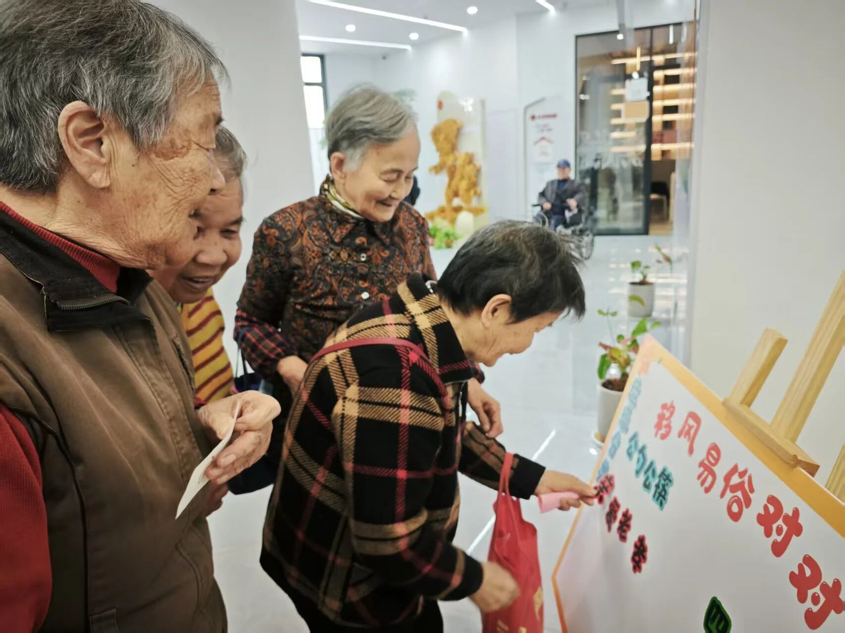 另一边趣味十足的互动游戏中,怀旧游戏与时代新风温馨碰撞。翻花绳、四季风尚翻翻乐、移风易俗对对碰等传统与新意兼具的趣味游戏同步上线,带来独一无二的重阳体验,也让居民在参与中学习、践行、传递着孝老爱亲、移风易俗文明新风尚。