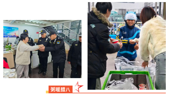 在长江软件园、新业坊源创户外职工爱心接力站,由宝山区总工会配送的“腊八粥”套餐,也被一一发放至盒马骑手、园区保安等新就业形态劳动者手中,为寒冬中坚守岗位的他们送去温暖,让更多在高境奔忙奋斗的职工感受到工会的牵挂与问候。