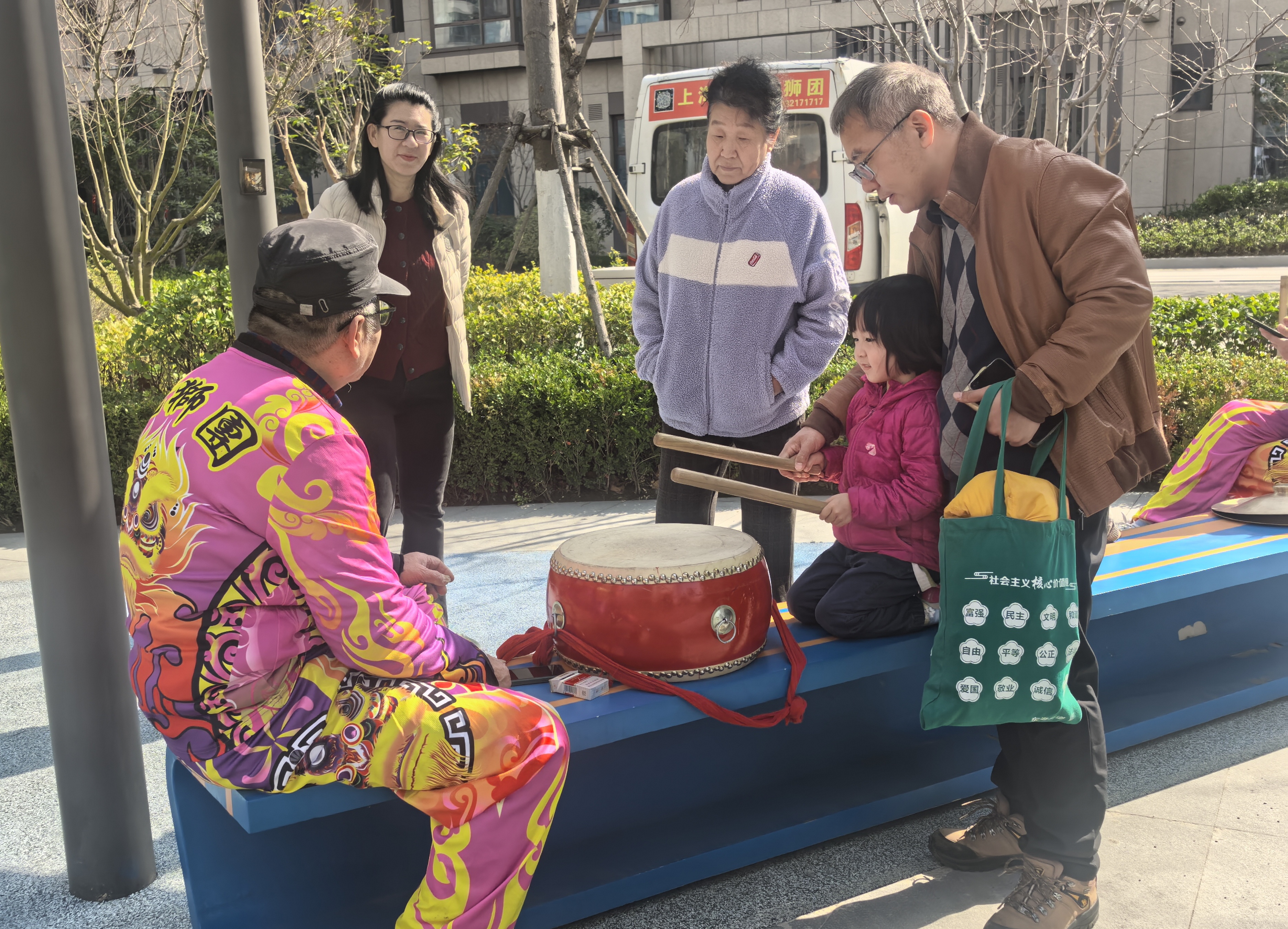 巡演结束后,小区步道变为临时舞台。专业队员继续舞龙表演,赢得阵阵掌声。一旁,几位“小先生”围在打鼓的爷叔身边,向他请教技巧。爷叔耐心讲解节奏和手法,孩子们认真尝试、反复练习。“学打鼓很有意思,既体验了传统民俗,也感受到了过年的热闹。”一名参与的小朋友说。  此次活动以“大手牵小手”的形式,让青少年在沉浸式体验中走近民俗、传承文化,也为邻里互动搭建了桥梁。下一步,瑞祥嘉苑居民区将继续开展更多富有文化内涵与参与感的活动,引导“小先生”们在实践中传递文明、传承文化,成为社区治理中一支朝气蓬勃的青春力量。