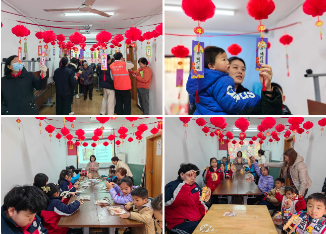 长征新村居民区开展“浓情元宵•乐在长征”主题文化活动。居委会议室内挂满五彩灯笼,一条条涵盖党史知识、传统文化、科普常识的灯谜吸引居民们扶老携幼、凝神思索。社区工作人员化身“答题助手”,为猜中谜底的居民送上元宵小礼品。93岁的左阿姨拿着奖品笑得合不拢嘴:“这些灯谜很有传统味,老有劲个!”与此同时,手工灯笼DIY现场温馨而专注。上海馨享社区公益服务中心的老师指导小朋友们制作手工提灯,从折叠、粘贴到组装、装饰,孩子们学得认真、做得用心。一盏盏色彩斑斓的灯笼相继诞生,映照着居民们的笑脸,也照亮了社区的幸福时光。
