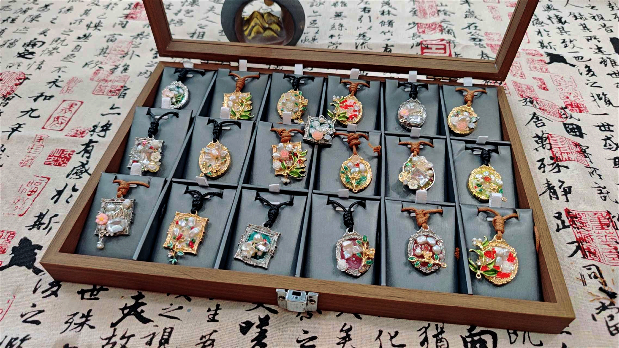 渐渐地,一颗颗巴洛克珍珠,或搭配小巧银饰点缀,或高低错落成富有层次的结构,慢慢在底托上“安家”,变成一件件独具个性的吊坠。“这也算是一件艺术品嘞!”“我选的这颗珍珠光泽太特别了!”“搭配我的旗袍肯定特别显气质!”——赞叹声、笑语声此起彼伏,活动现场气氛温馨而热烈。