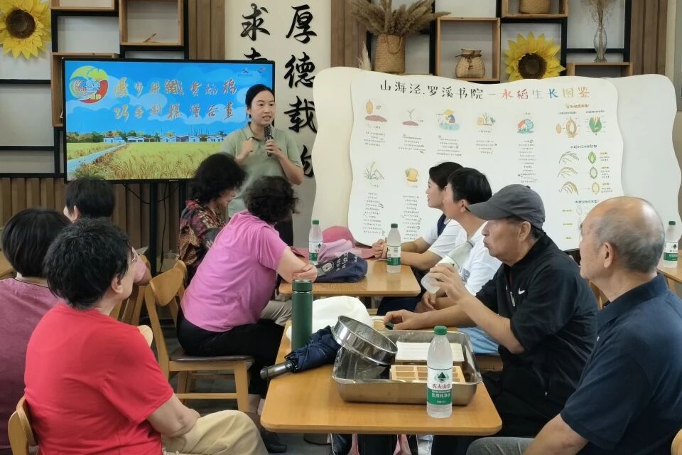 “罗泾原来还有这么美的地方啊!感叹我们从来没有来过!” 走进花红村罗溪书院耕织园,一片片金黄的稻穗在微风中摇曳,与层层叠叠的棉花田相映成趣,瞬间吸引了老年居民的目光。 	10月16日世界粮食日当天,海上御景苑党支部联动镇第二综合网格的花红村资源,实现网格间互联与资源共享,以 “暖海银龄” 为老服务品牌项目为载体,结合重阳节开展主题活动。活动通过节粮家风宣传、非遗四喜风糕制作,带领老年居民亲近田园、体验农趣,在感受新农村风貌的同时,也将节粮爱粮、孝老爱亲的文明风尚融入其中,实现优良家风与时代新风的同频共振。