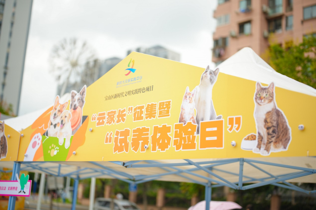 云宠“有”家,为爱出发为积极响应宝山区新时代文明实践号召,推广科学文明养宠理念,搭建宠物救助与领养的爱心平台,10月19日下午,宝山区云家长征集暨试养体验日首场活动在宝山U天地火热举行。本次活动通过线上多渠道宣传与线下互动体验相结合的方式,成功吸引了众多周边居民和商圈游客驻足参与,现场爱意涌动,交流氛围热烈。