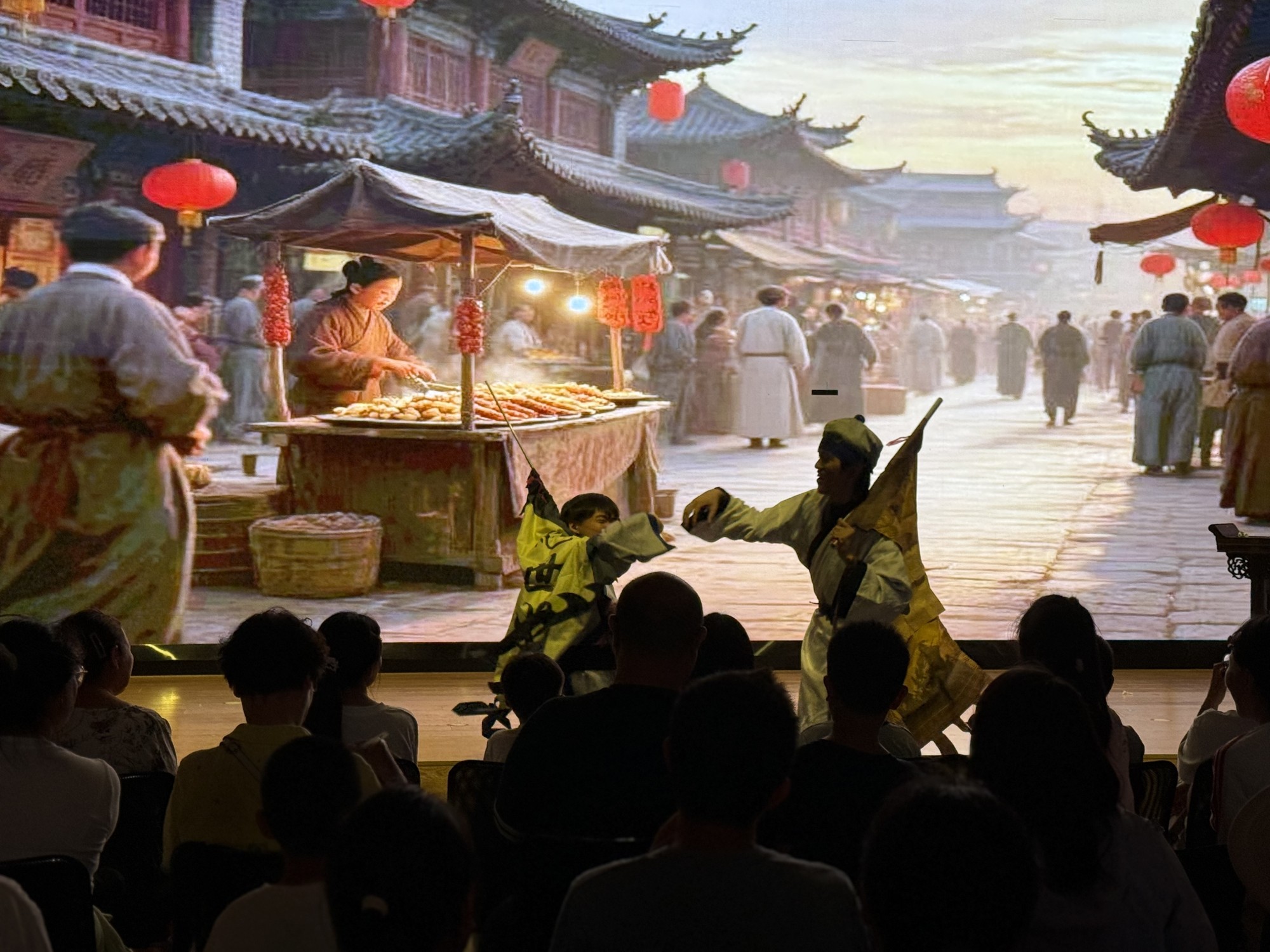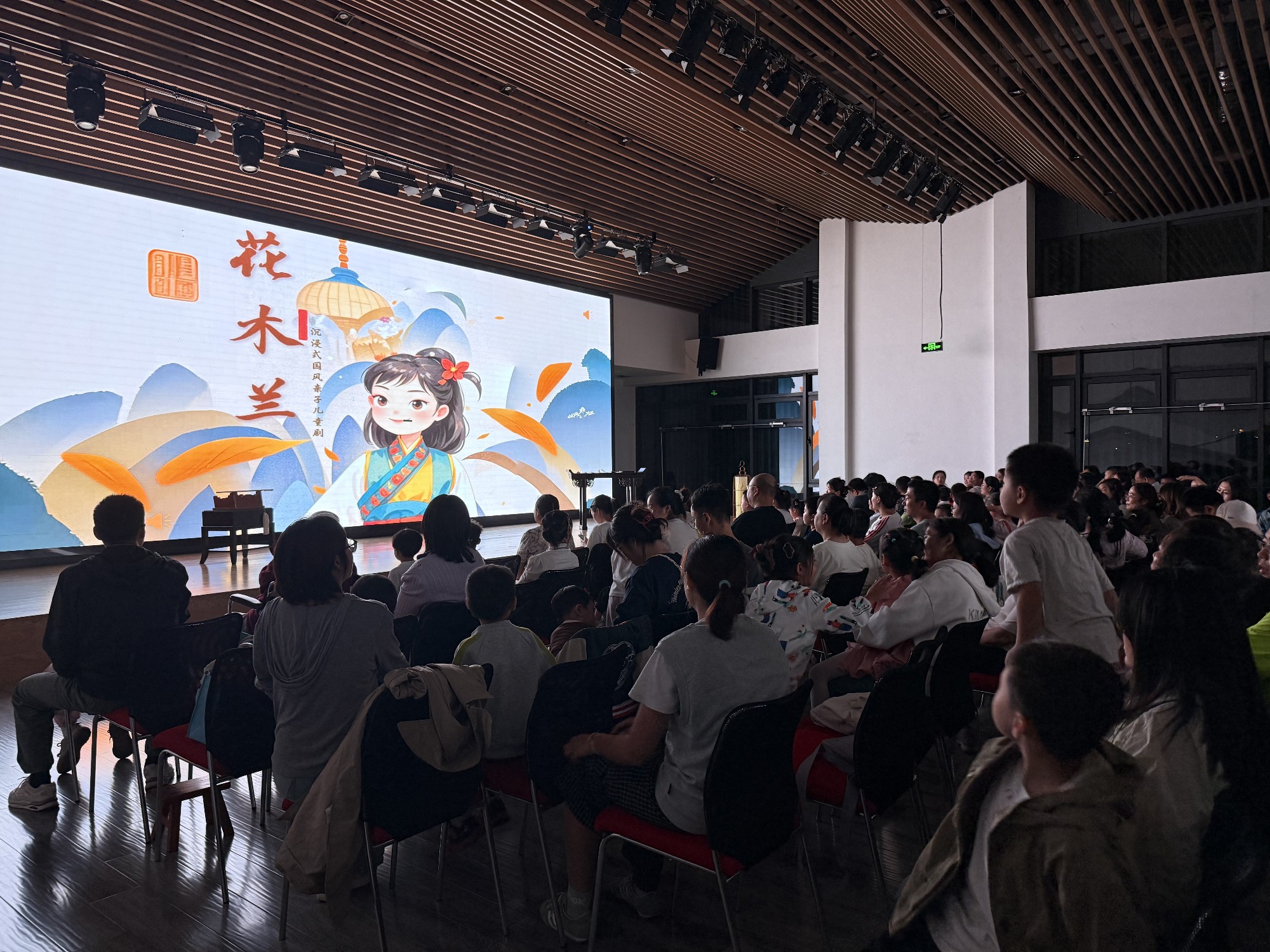 儿童剧《花木兰》当晚的演出收获了热烈的反响。多功能厅里座无虚席,共计吸引了超过100位大小观众前来观看。还有的爸爸全程“驮着”孩子站在最后看完了演出。演出结束后,还有小朋友冲到台前和演员合影。剧中轻松幽默的桥段,经过演员的演绎,更添几分喜感,演出中,观众笑声掌声不断。 谢幕时,小朋友们依依不舍的眼神中闪烁着光芒。孩子们在剧场不仅收获了欢乐,更在心中种下了勇气、孝道与家国情怀的种子。