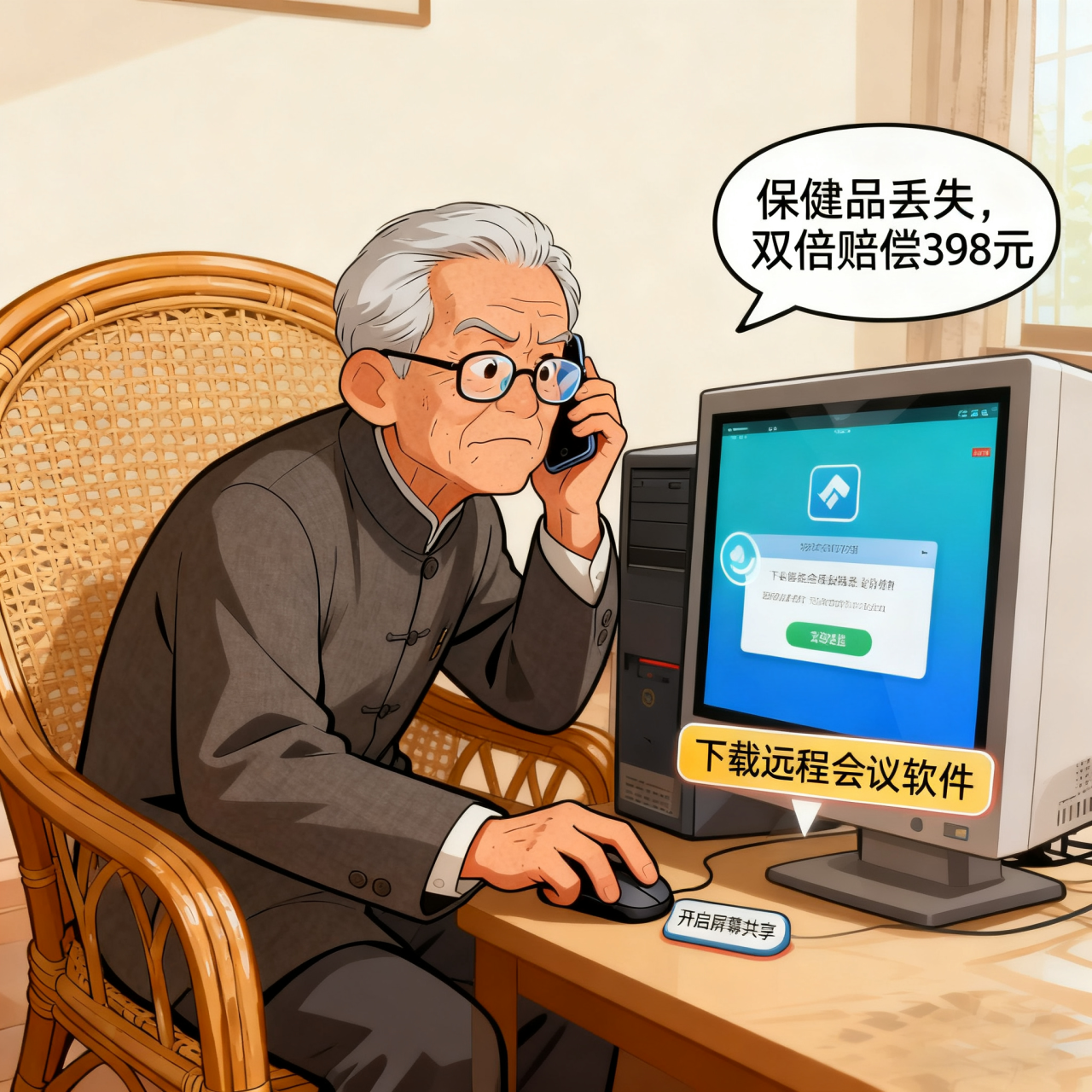 案例二:快递理赔诈骗 辖区内一位七旬老人接到自称"快递公司理赔部"的电话。对方声称老人子女购买的价值398元的保健品在运输途中丢失,公司将进行双倍赔偿。在取得老人初步信任后,对方以"快速办理理赔"为由,要求老人下载某远程会议软件并开启屏幕共享功能。正当老人准备操作时,被巡逻经过的社区民警及时发现。民警立即制止后续操作,并耐心向老人剖析这是典型的快递理赔诈骗手法,最终让老人认识到骗局,避免了财产损失。