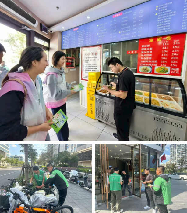 实践赋能,擦亮为民初心 思想的洗礼,最终要落脚到为民服务的具体行动中。美兰西湖街区党支部组织开展“焕新街区”专项志愿服务活动,切实推动学习成果转化为街区治理的生动实践。“西湖有约”志愿者们深入街区,走访商户,通过发放宣传页、现场演示等方式,耐心讲解“全域门责”理念,普及门前环境卫生与市容秩序维护规范,同步开展垃圾分类精准指导,有效提升了商户的知晓率与参与度,推动实现从“要我参与”到“我要参与”的转变。叮咚买菜门店长王先生是一名在街区阵地报到的流动党员,他参加活动后表示:“会把学到的理念带回门店,带动更多同事参与街区治理,共同守护这份美好环境。”