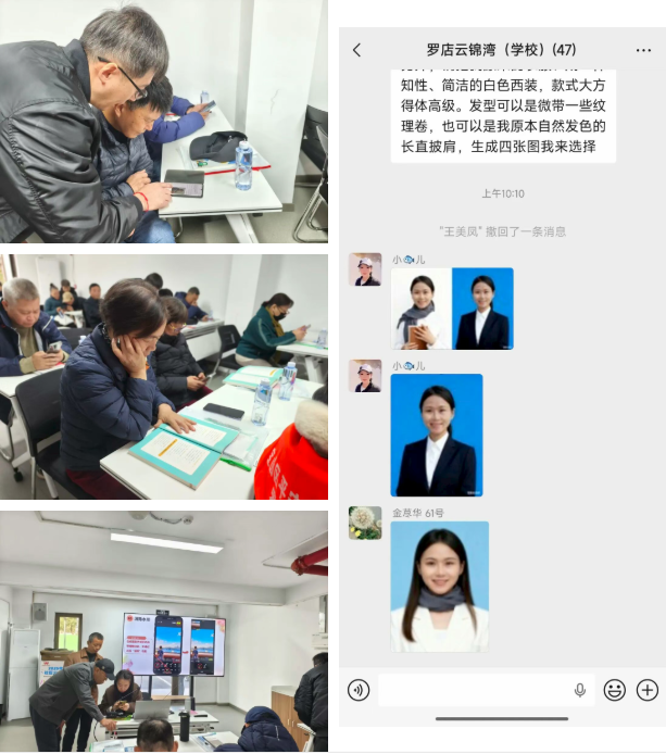 玩转智能新体验 美健居民区组织社区50 余名老年居民参与公益服务课程——老年人智能设备应用与生活品质提升课程之“手机修图小魔术”。课程聚焦实用技能,从基础教起。老年学员们在老师的悉心指导下,从学习如何为证件照P图、更换背景颜色入手,逐步深入到将照片背景图换成心仪风景的进阶操作。课堂上,学员们全神贯注,戴着老花镜,紧跟老师节奏,遇到疑问主动提问,学习热情高涨。每成功完成一次修图,便迫不及待地展示自己的P图成果。一堂课下来,老年学员们不仅掌握了实用的手机修图技巧,还当场建立了“云锦湾老年智能手机应用交流群”,拉进邻里情的同时,助力老年生活“智”变。