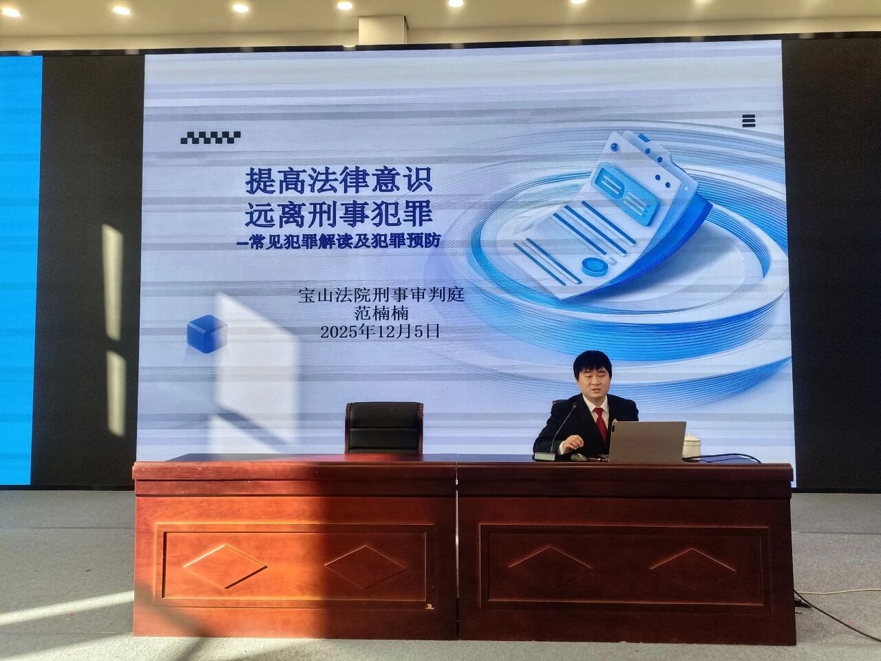 本次活动将宪法精神送到了居民“家门口”,有效增强社区群众的法治观念,营造尊法、学法、守法、用法的良好氛围。法治社区,你我共建! 矫心正行,法护新生促回归 为持续强化社区矫正对象的法治意识和身份意识,预防重新违法犯罪,2025年12月5日,镇司法所邀请宝山法院刑事审判庭范楠楠法官在罗店镇党群服务中心举办“提高法律意识远离刑事犯罪”专项法治教育讲座。本次讲座旨在通过精准法律解读,帮助矫正对象明晰法律红线,增强自我防护能力。