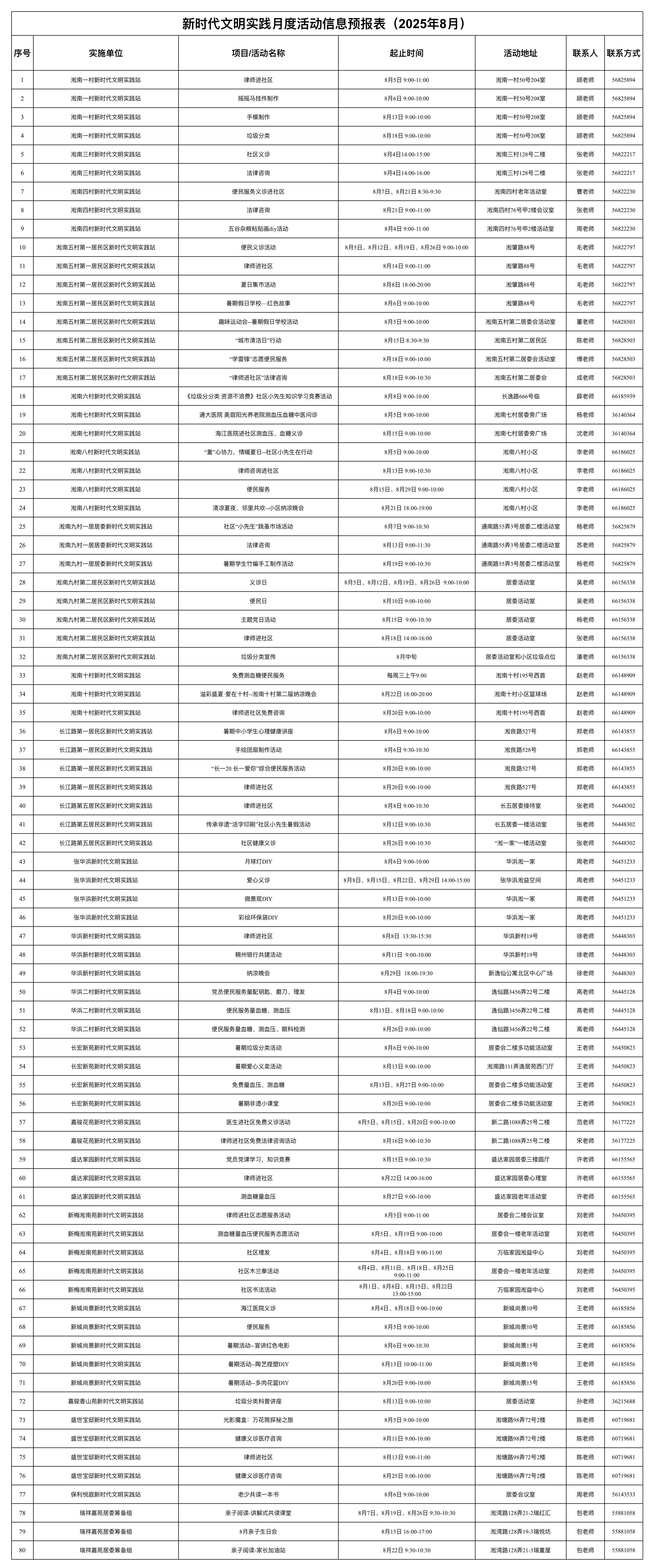 以下为2025年8月新时代文明实践活动安排表,欢迎大家根据个人实际需求踊跃参与!