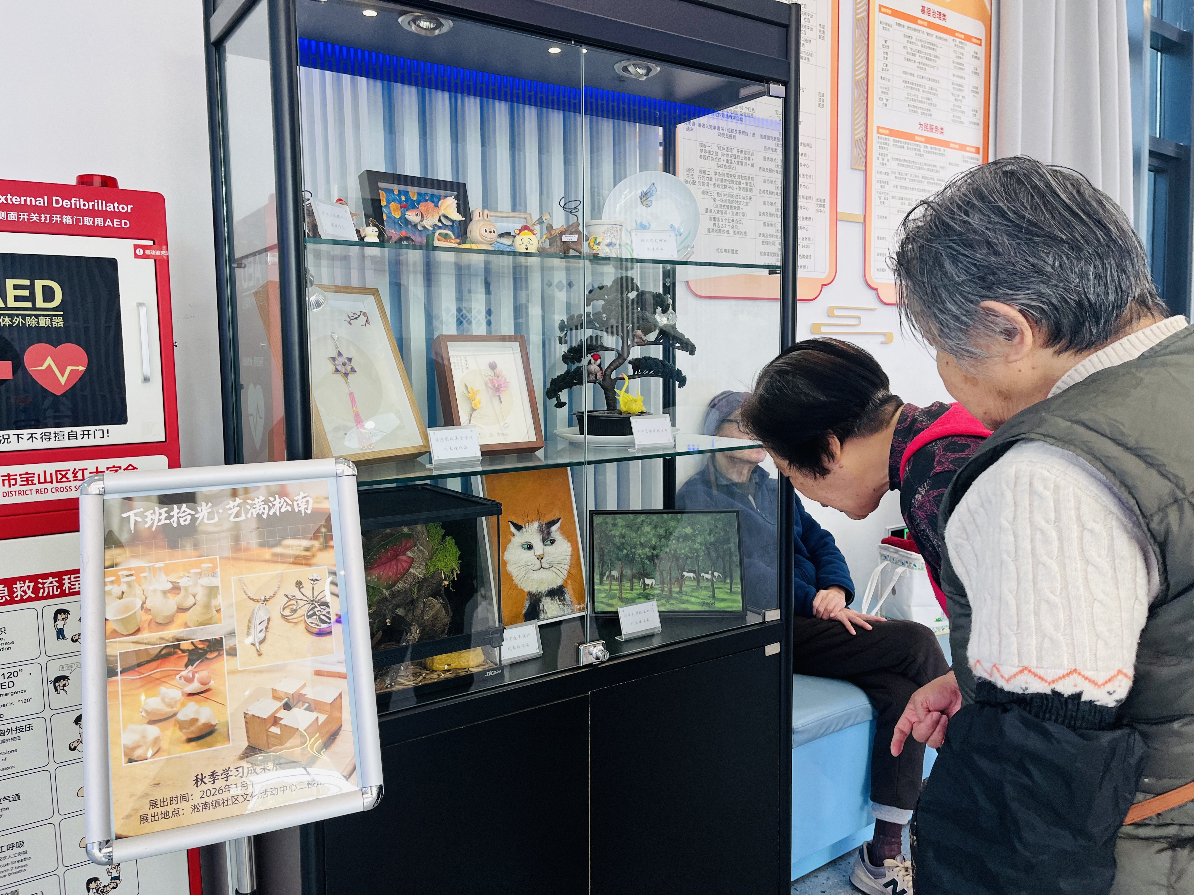 成果展位于淞发路 578 号淞南镇社区文化活动中心一楼大厅。此次展览既是学员学习成果的集中展示,还是“全民学习、全民艺术”社会大美育氛围的生动营造。 “下班拾光・艺满淞南”的夜校课程不仅是一个时间概念,更是一种生活态度。希望通过这些课程,为淞南镇公共文化建设注入新活力,让艺术不再是遥远的欣赏对象,而是可触可感的日常实践。