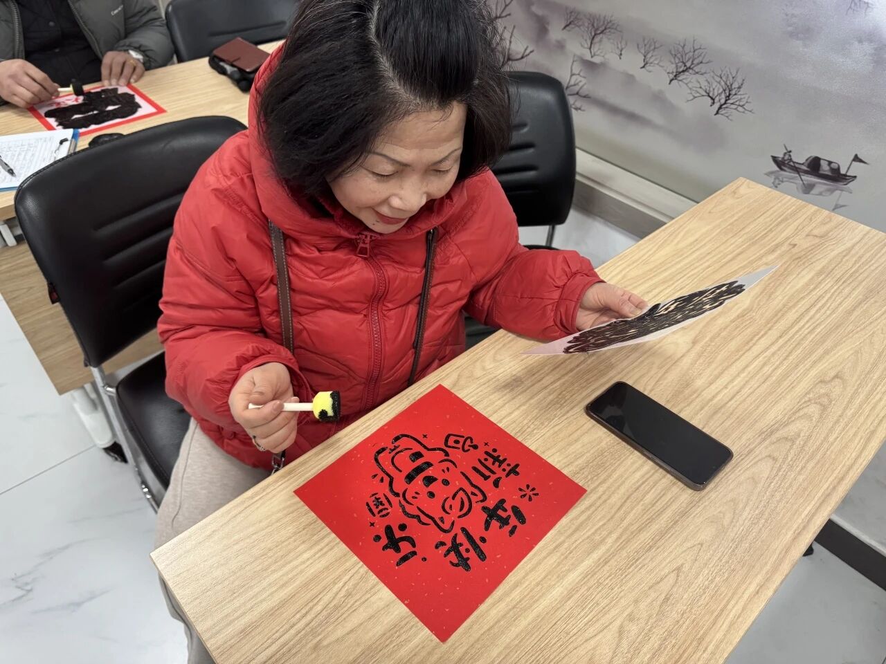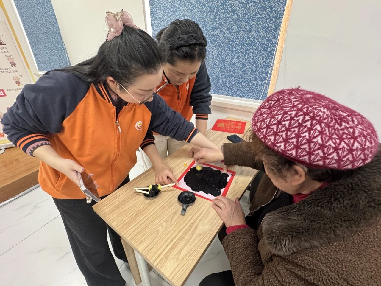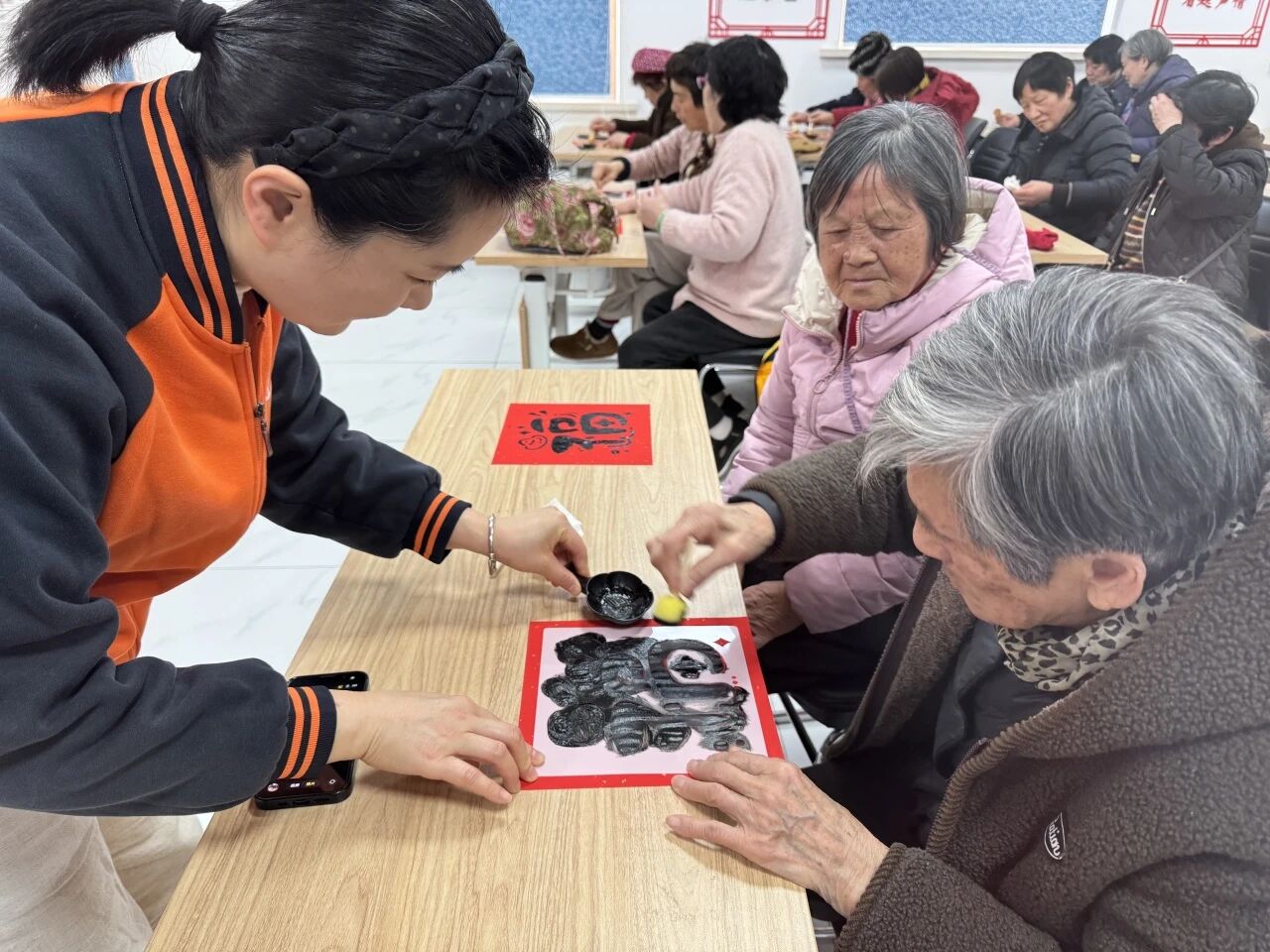 古镇睦邻老年人日间照料中心的工作人员备好红宣纸、吉祥模板、墨水与海绵等材料,耐心细致地为老人们讲解拓印的技巧,指导老人均匀蘸墨,轻拍慢拓,每一个步骤都示范得清晰明了。   老人们兴致勃勃地参与创作,挑选模板,蘸墨轻拍,一幅幅寓意美好的图案很快便跃然纸上。大家越做越投入,不少老人制作了好几幅作品,脸上洋溢着满满的成就感与幸福感。   此次活动以传统技艺为纽带,以金融助老为支撑,让“低龄助高龄”的互助养老模式在罗店镇落地生根。未来将持续开展更多暖心活动,让互助精神温暖人心,让老年人乐享幸福晚年。