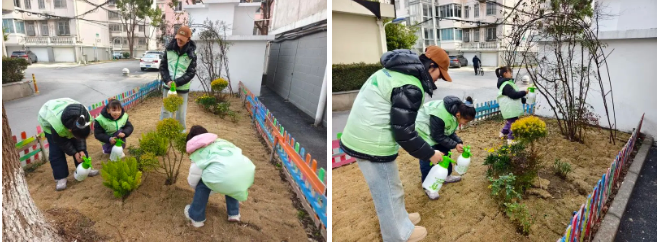 近日,吴淞三营房“双拥小苑”门前的一块小面积绿化地迎来了几个身穿绿色志愿者马甲的小朋友,他们是三营房居民区的“社区小先生”,趁着寒假来给这里的花花草草浇水做养护。小花园虽然面积很小,但是内涵丰富,不但有一棵参天大树,还有平整的小草坪、正在开花的小绿植,更有一圈色彩斑斓的小栅栏围着它,堪称传说中的“小而美”。“社区小先生”黄心妍说:“我之前用颜料涂刷了围栏,感觉它变得更好看、更丰富了。”三营房居民区党总支书记表示:“这里有小区车辆进出的一个主要通道,之前这片绿化存在黄土裸露的情况,既影响美观,更主要的问题是在这个小花园的中间还有两棵小树,车辆进出的时候就会影响驾驶员的视线,存在安全隐患。居民区做了改造计划,也征求了小区里面部分居民的意见,然后把这里进行了微改造。”经过改造,这个长期荒废的角落悄然变身,成为居民津津乐道的“口袋花园”。“口袋花园”南侧的泵房也在这次改造中被粉刷一新,并在靠近马路的一侧种上了蔷薇,曾经灰头土脸的泵房也瞬间亮丽,与新改造的“口袋花园”相映生辉。改造过程中,三营房居民区积极发动“社区小先生”、党员和居民志愿者等多方力量,共同做好清理杂草、翻整土地、绿植采购等基础工作,让原本荒废的角落重焕生机。
