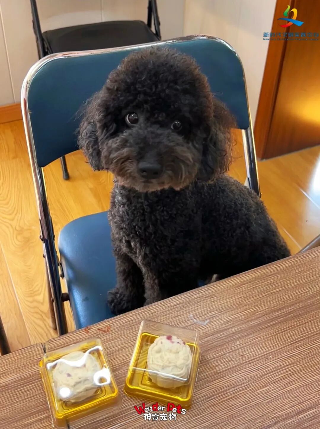 03巧手制作·宠物月饼 最热闹的当属宠物烘焙体验环节!烘焙老师准备了多种食材,大家围坐一堂,亲手为爱宠制作中秋月饼。平日经常下厨的几位阿姨崭露头角,手艺完全不输老师。在专业指导下,各位宠爸宠妈不仅学到了科学喂养知识,还在制作过程中交流养宠心得,分享与毛孩子的温馨日常。几只被带来课堂的毛孩子争先吃到了“新鲜出炉”的月饼,家长们直夸配料干净,适口性也好,以后自己在家也能做了。