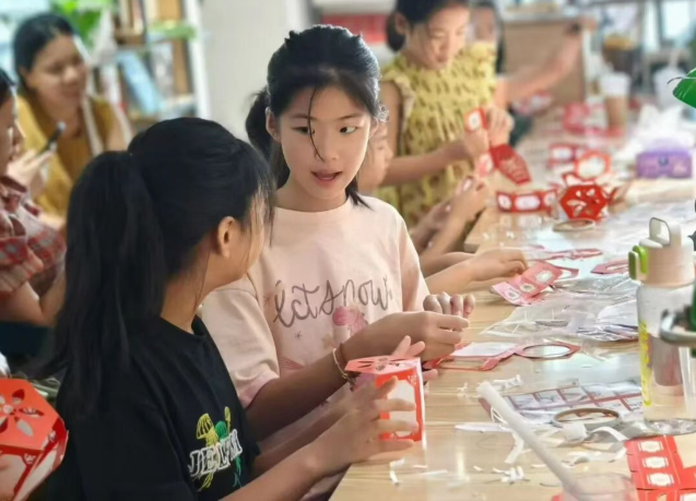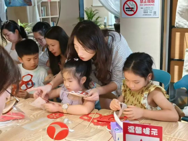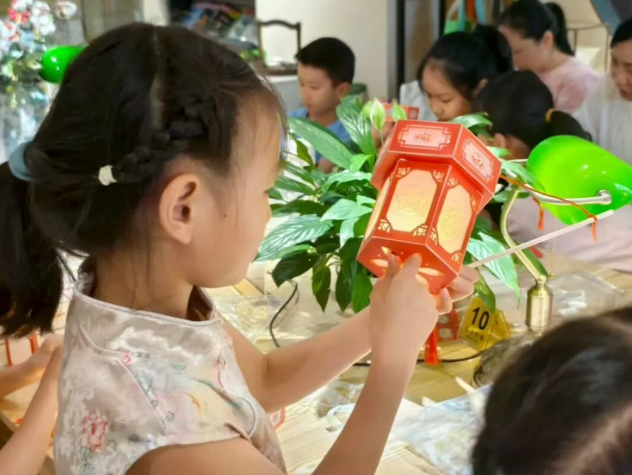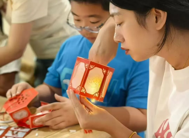 制作环节开始后,每个家庭都沉浸在自己的创作世界中。孩子们小心翼翼地折叠彩纸,家长们则在一旁细心协助,时而指导,时而鼓励。一双双小手和大手默契配合,将一张张平凡的彩纸渐渐变成精美的六角宫灯骨架。 "妈妈,你看我这个角折得整齐吗?" "爸爸,帮我系一下这个流苏好吗?" 活动现场充满了这样的亲子对话,温暖而动人。