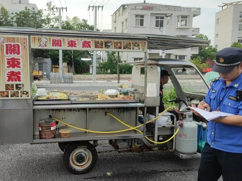 如果说严格执法是精绣市容的“秩序之锚”,那么疏导服务便是化解矛盾的“润心之手”。中队早前在川纪路、川念路划区域设定了“罗泾港便民疏导点”,在明确要求遵守“三不原则”——不占用盲道与消防通道、不影响行人和非机动车通行、不侵害他人合法利益的前提下,为一批有合规经营意愿的小吃摊主提供了固定的“安身之所”。为加强秩序维护和日常管理,“蓝精邻”自发组建了巡查服务小队,及时响应疏导点合理需求,对疏导点外的乱设摊行为开展整治,从源头上减少了设摊“回潮”的可能性,实现了市容环境与民生需求的巧妙平衡。