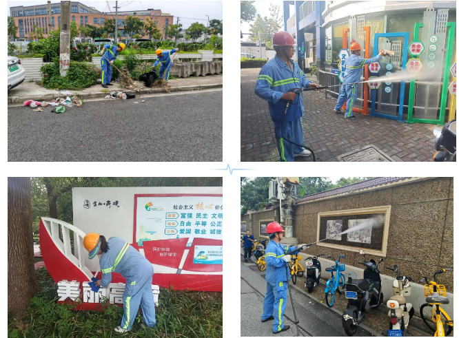 高境环卫组织人员对地面道路及路面附属设施、人行道等部位进行机械冲洗,加强对高架匝道口、路沿石、隔离墩、防撞柱及周边的冲洗,对污染严重部位或易污染区域实施精细精准冲洗,确保冲洗后路面见本色。 各居民区组织物业、志愿者等多方力量聚焦社区顽疾,开展环境整治专项行动。大家齐心协力捡拾绿化带垃圾、铲除小黑广告、清理楼道堆物、规范车辆停放,以实际行动改善社区环境面貌,营造出整洁、安全的居住氛围。