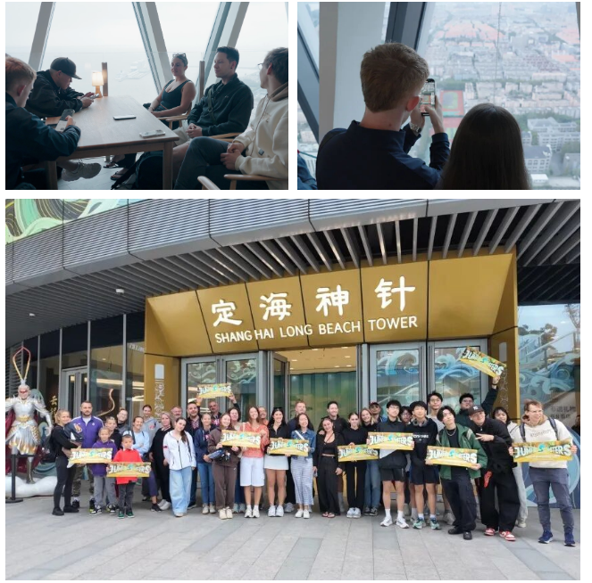 体验团首站登临 "定海神针" 观光塔高空观景平台,15-18 层开阔视野下,黄浦江与长江交汇的壮阔江面、往来邮轮与陆家嘴天际线构成动态城市图景。选手们登高望远,将宝山滨江景观尽收眼底。不少人发出“哇”的惊叹,国际选手感到既震撼又新奇,给他们提供了一种全新的城市景观视角。
