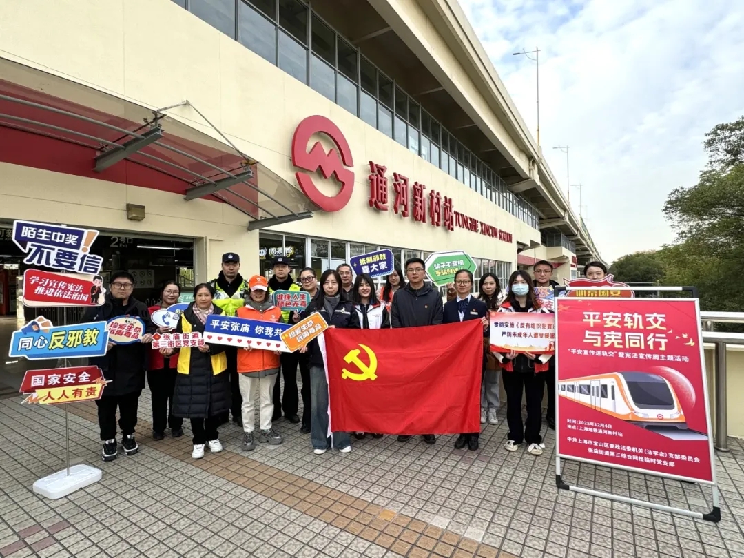 近日,第三街区党支部联合区委政法委机关(法学会)党支部、街道平安办、上海地铁第一运营有限公司1号线管理部第二党总支等多方力量,共同开展“平安宣传进轨交”主题活动,推动党建引领网格治理与轨交平安建设深度融合,将平安服务精准送到市民出行“第一站”。