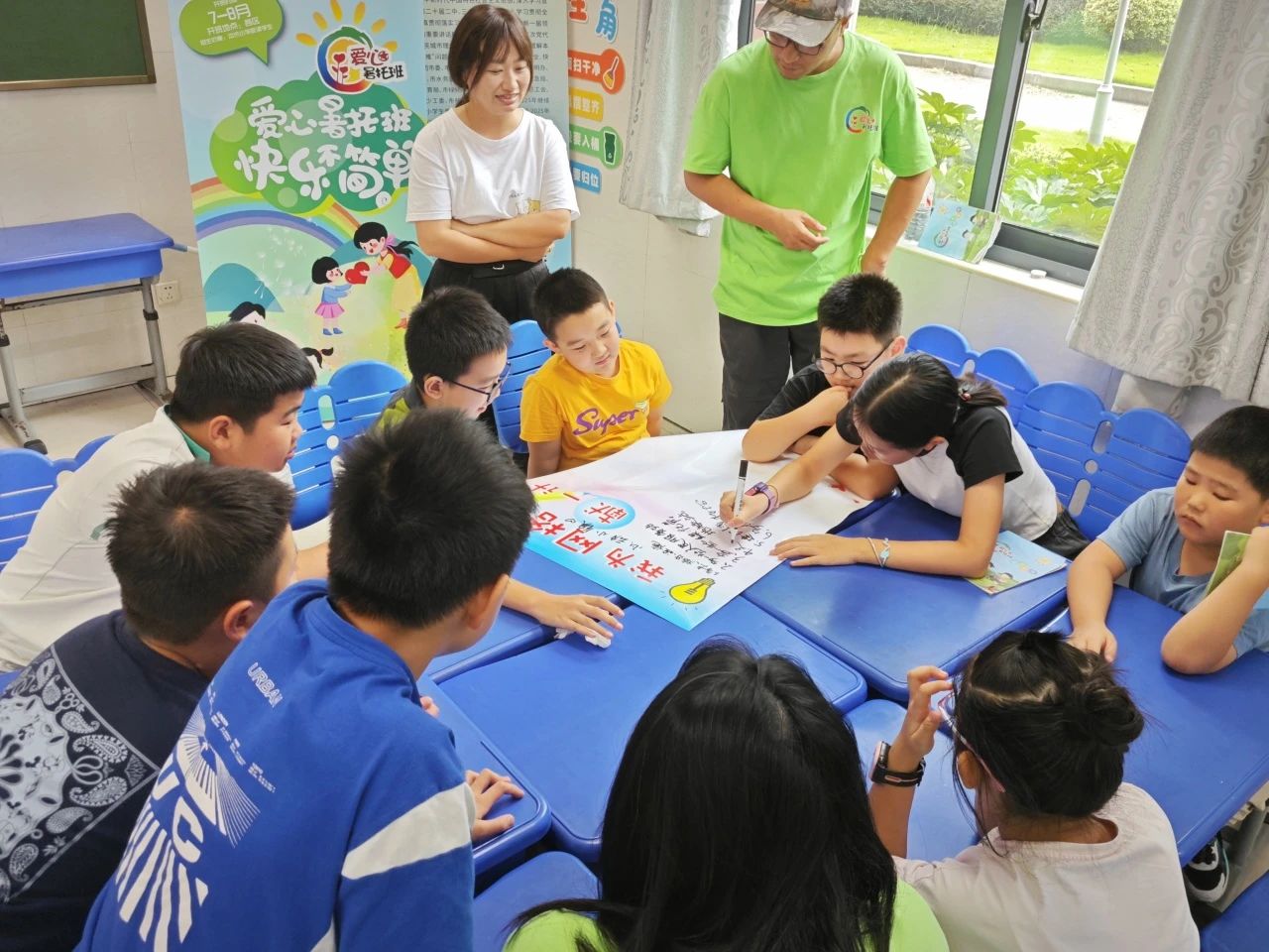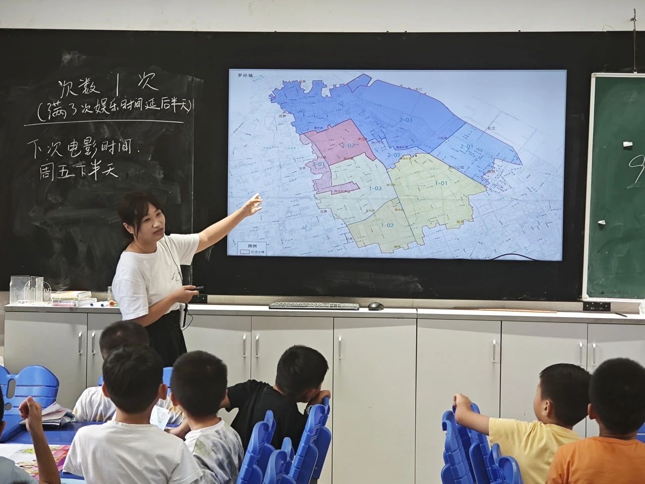 “顾老师,我住在信达蓝庭,是您说的第三综合网格里的吗?”“我们小区门口的花坛里的花的品种能多一点吗?”……8月11日,罗泾镇爱心暑托班的教室里暖意融融,一场由睦邻小镇街区党支部精心策划的“我为网格献一计”主题课程正在进行,罗泾镇爱心暑托班里的“社区小先生”们化身“网格小主人”,用童真视角为街区网格治理出谋划策,现场迸发的奇思妙想让整个课堂充满了活力与温度。 “大家知道吗?我们住的小区、常去的公园、商店,都是‘网格’的一部分哦。”课程伊始,睦邻小镇街区党支部书记的顾叶青指着墙上的罗泾镇网格划分图,用小朋友听得懂的语言介绍道,“我们罗泾镇有三个网格,网格里的大大小小的事情都可以找网格工作人员来协调解决哦,当然也欢迎大家贡献自己的力量参与到我们网格的管理中。”