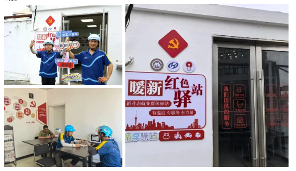 新业坊·源创园区的保安团队主动与盒马、顺丰等站点对接,熟悉小哥派送节奏,提前引导车辆停放,协助维持秩序。此外、园区保安大哥和盒马小哥还一齐参与到园区内暖新驿站的运营维护工作,定期开展对暖新驿站周边环境清理、设施保养等,共同守护供户外职工使用的便民服务设施。一位保安笑着说:“以前是对着喊‘不能停’,现在是笑着问‘需要帮忙吗’?”