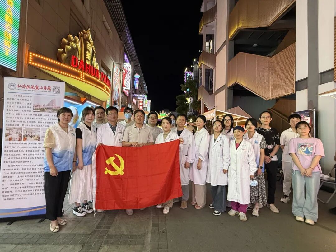 一个金点子:当“夜市”遇上“健康” 说起办活动的初衷,虎城街区表示:“最近申城天气持续高温不下,我们在走访外卖站点时看到小哥们很辛苦,想为他们的身体健康做点什么,我们就想,怎么能把服务送到他们‘眼前’?” 在与大场医院、虎城商圈现场踩点时,大家聊起来“之前搞过不少健康讲座、义诊,都是主要放在医院、园区、写字楼里的,离小哥们比较远,他们也基本不会去。同时,很多咨询一般都是放在工作时间段,街区周边的居民也没空前往。”街区注意到,街区内的大华夜巷人气极旺,是男女老少夜晚休闲的“打卡地”。“既然大家晚上都爱来逛,这里又有街面商户,小哥们也会接单送单穿梭其中,我们为什么不能把健康服务也搬过来呢?”一个将民生服务与夜间经济深度融合的“金点子”应运而生。 说干就干!虎城街区迅速牵头,将这个“健康夜市”定为服务新就业群体的重要实践载体,目标就一个:让健康服务不再正襟危坐,而是接地气、有人气、冒热气。 一个好的创意,需要强大的执行力来支撑。虎城街区党支部展现出了强大的“朋友圈”号召力。 “红色摊位”点亮夜市。支部首先发起了“党员亮身份”的倡议。同是街区内的“小个专”商户、又是街区支部的党员王老师,第一个响应。他所在的摊位是“健康养生中医茶饮”,主要是免费为参加活动的市民、新就业群体等提供茶饮。“我是党员,又是咱街坊,能给大家的健康出份力,我心里高兴!”王老师朴实的语言道出了许多党员商户的心声。这些散布在夜市各处的“红色摊位”,成了流动的志愿服务点,也成为群众心中最可靠的“求助站”。 “商户联盟”成了“后援团”。 党支部没有单打独斗,而是积极发动街面上的治理力量。凯明齿科的李医生,主动提出“小哥看牙免费问诊”;吴良材眼镜店提供护眼、爱眼小妙招,并义务开展眼镜镜架矫正;虎城商圈、周边居民区送来了桌椅;交行解决了停车位;治理委员会成员单位之一的通诺保安公司增派力量、加强了巡逻,兼职做起了引导员。一个由党支部搭建平台、商户联盟广泛参与的“共治生态”在夜市这个最小单元里生动运转起来。 一份烟火气:咨询不再冷冰冰,服务更有温度 晚上七点,“健康夜市”的专属区域正式亮灯。与传统医院里冰冷的白色调不同,这里的健康咨询区就设在温暖的灯光和欢声笑语之中。 仁济医院宝山分院的田医生刚下白班就赶来“出摊”,他的“摊位”前很快排起了队。“医生,我最近送货比较多,腰酸背痛,有什么可以缓解的方法没有?”“大夫,帮我量量血压吧,这几天感觉有点晕。”田医生一边耐心解答,一边笑着说:“在这氛围里,和居民交流更轻松了,他们更愿意敞开心扉,我们宣教的效果也更好。”