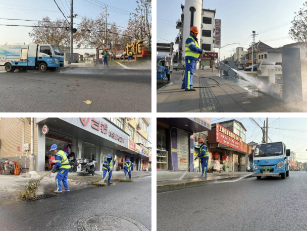 月罗环卫对罗升路、罗太路、塘西街、东西巷街“四纵一环”深度清扫和冲洗。