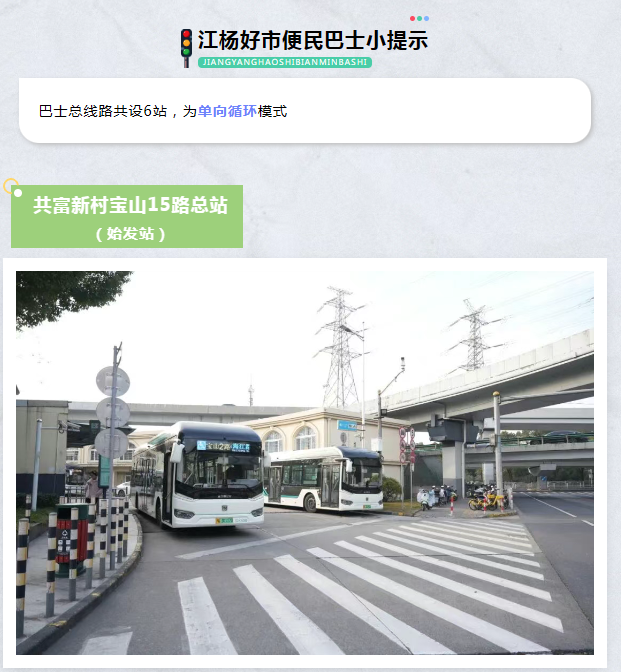 12月29日早晨6点30分,一辆摆放“江杨好市便民巴士”标牌的公交专线缓缓驶出位于宝山区共富新村宝山15路始发站。在行驶约20分钟后,车辆驶入杨行镇香逸湾小区附近的莲花山路杨泰路站点,迎来本列班线开通后的首批乘客。