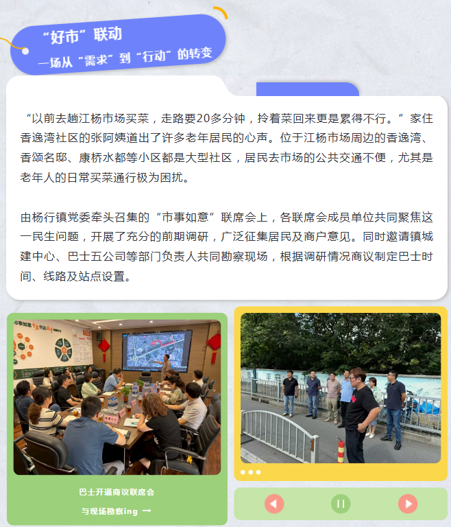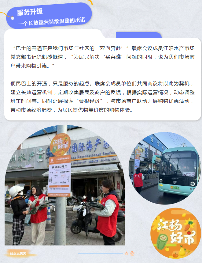 这不仅是一辆解决居民“买菜难”的巴士,更是“江杨好市”党建治理品牌推动“市事如意”联合治理、践行“办好惠民实事”的生动实践。